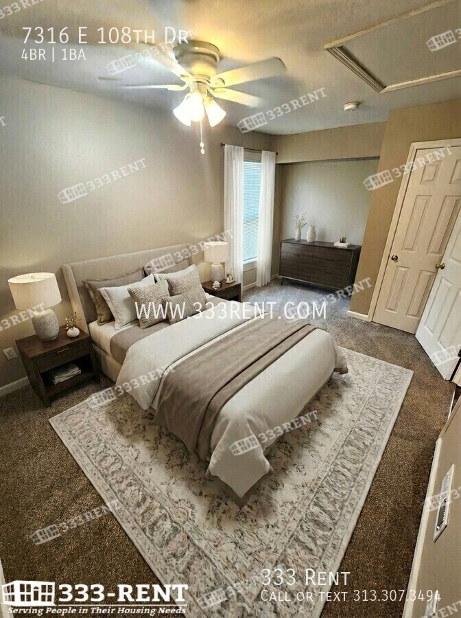 There is currently a 4 Bed 1 Bath Home for rent with 1,100 sq ft listed at 7316 E 108th Dr. It is Available Now.
