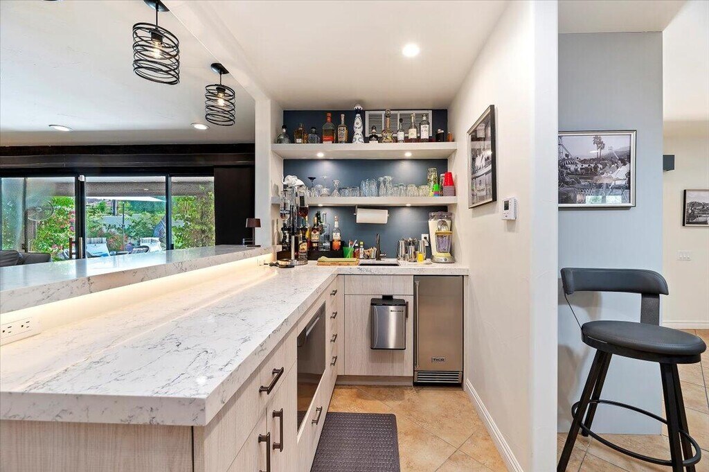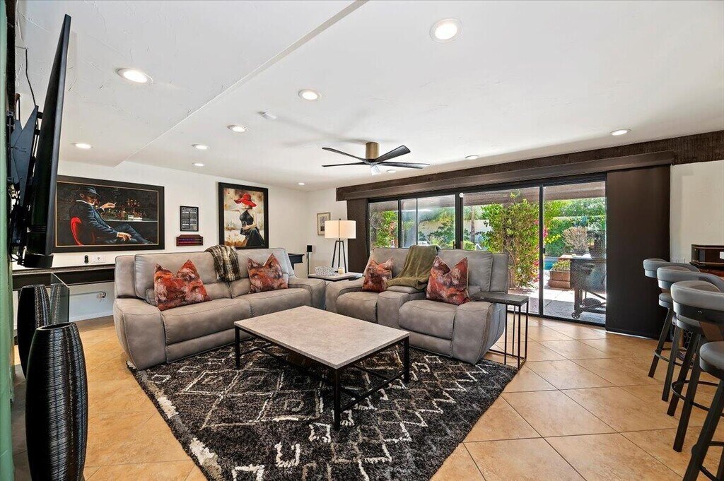 $10k /month for November,$12k/ month for December,$15k/month for January or February,and $20k/month for March or April- will also consider $60k for 6 months- Completely remodeled,fully furnished,turn-key,South Palm Desert compound - NO HOA - A+++ location - Walk to El Paseo - Main house is approx. 3900 sqft. and consists of 3 large En Suite ( all have private full baths) bedrooms plus 1/2 bath - Recently remodeled Gourmet kitchen with open floorplan,breakfast bar with 5 seats,gas cooktop,Double ovens,Modern fridge and custom cabinets and pantry - Incredible fully equipped bar area with sink,ice maker,wine/beverage fridge,bar dish washer,and 4 stool bar - high soaring ceilings in the living room/family room area with dramatic dual sided gas fireplace - Amenities also include full size shuffle board table,2 player video game station,Ping pong table,Sonos system with 5 speakers and 6 mounted TVs included - Back bedroom sleeps 4 and has Infra -Red spa in bathroom- Back yard includes pool,spa,misting system,cabana/bed area,BBQ,gas firepit,TV and lush mature landscaping - Like new ( completed in 2022) approx. 600 sqft. ADU/Guest house with 2 bedrooms ( sleeps 5 comfortably,fully equipped kitchen ( stackable washer/dryer in place) and full bathroom- Entire property is serviced by top of the line water filtration system and solar system - 2 car garage + 2 car carport,and oversized driveway - Very private,completely fenced,fully landscaped grounds with water saving desert-scaping - Rarely available,Fully stocked,turn-key luxury South Palm Desert residence. **** lease will include all utilities with a max for any overagges