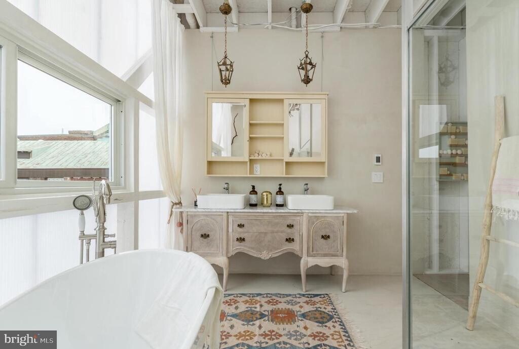 A captivating residence in East Passyunk. This architectural marvel boasts translucent walls and exquisite European finishes. Prepare to be awe-struck by one of Philadelphia's most remarkable new construction homes. Crafted with unwavering attention to detail, every material within this abode has been meticulously hand-selected. Sustainability and functionality were key considerations in sourcing each element, resulting in a harmonious blend of beauty and purpose. With a facade that invites abundant daylight and a warm lantern-like glow at dusk, this home offers three bedrooms, two bathrooms, and thoughtful amenities like an in-unit washer/dryer. Fully furnished with curated elegance, the open concept kitchen features heated floors, quartz countertops and an induction range. The living room is laid with stunning oak floors, included dining table and custom sofa. Artistic touches adorn each space, including the custom spiral staircase, custom light fixtures made by local artists and art pieces throughout. The bathrooms also showcase local artist-made vanities, and the primary suite exudes enchantment with heated Spanish tile flooring, a seamless walk-in shower, and a stand-alone clawfoot tub with a custom swan faucet. Dual shower heads and a custom-built vanity with dual sinks add luxurious touches, complemented by German-crafted hansgrohe faucets and a tankless hot water heater. The unfinished basement offers ample storage space and a moisture-free environment thanks to insulated concrete form construction. Tucked away on a serene street, this gem of a property is waiting to become your cherished home. Schedule your showing promptly for an opportunity to live in this magical space!