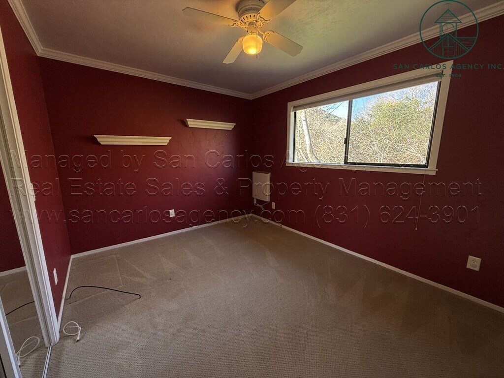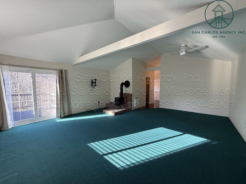 (WOMAM) San Carlos Agency, Inc. presents this sunny, private, three bedroom, two bath home located on a large, quiet lot in the heart of Carmel Valley situated along the serene Carmel River and adjacent to Garland Park. The carpeted living room features a stove fireplace and exits to the two guest bedrooms and bath (walk-in shower). The kitchen is off the entry and features a refrigerator (bottom freezer), electric cooktop, under counter single oven, dishwasher, built-in microwave, and trash compactor. An island separates the kitchen from the adjacent dining area. The primary suite is the entire upstairs with large tiled bath (separate tub/shower), spacious bedroom exits to a private deck with excellent valley and river views. The property features a large deck out the back with a fenced yard and spacious and private grounds with no neighbors in sight. The double car garage has plenty of additional room for storage. Laundry area off the kitchen with an abundance of cabinetry/storage and side by side washer/dryer units left as a courtesy to tenant. All utilities will be tenant responsibility except landlord will provide a limited gardening service as needed. Pets negotiable. No smoking. Contact San Carlos Agency, Inc. at or to schedule a showing. Visit or
