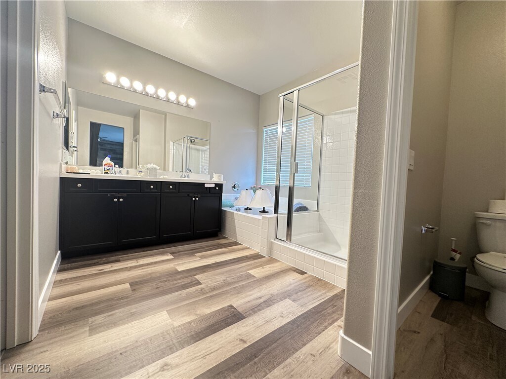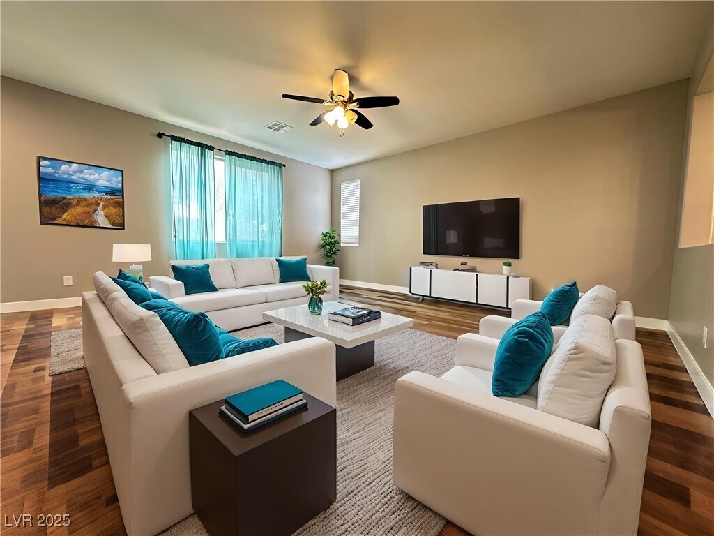 New flooring.New paint.Located in the heart of SW. Featuring 9ft. tall celling w/ beautiful strip view from upstairs, open floor plan, gorgeous kitchen w/ granite counertops/center kitchen island, tankless water heater, large bedrooms. In proximity to the 215 Beltway, shops, reastuarants, gym, short drive to the airport and much more. Guest quarter downstair w/ bedroom and full bath."