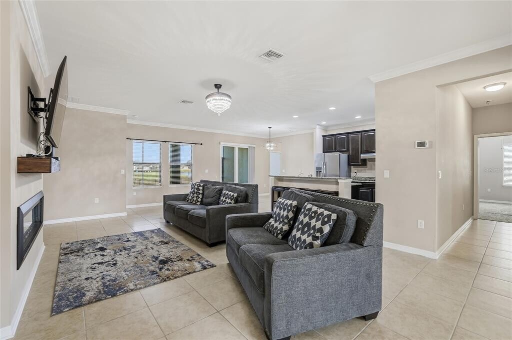 Beautiful 4BR/3BA home in Sheffield Glenn with 2,453 sq ft and a 3-car garage,backing up to a lake and protected wetlands for added privacy. Elegant crown molding in the main living areas! Open split floor plan with the 4th bedroom ideal as a mother-in-law or guest suite. Upgraded kitchen features granite countertops,stainless steel appliances,upgraded cabinetry,reverse osmosis system,and upgraded refrigerator. Tile flooring throughout main living areas,crown molding,9-ft ceilings,fresh interior paint,and upgraded carpet in bedrooms. Spacious primary suite offers a large walk-in closet,dual vanities,walk-in tile shower,and separate tub. Enjoy outdoor living on the screened lanai and paver patio overlooking scenic views. Centrally located near I-75 & I-275,walking distance to schools,parks,dog park,sports fields,and Buffalo Creek Golf Club. MLS# TB8463584