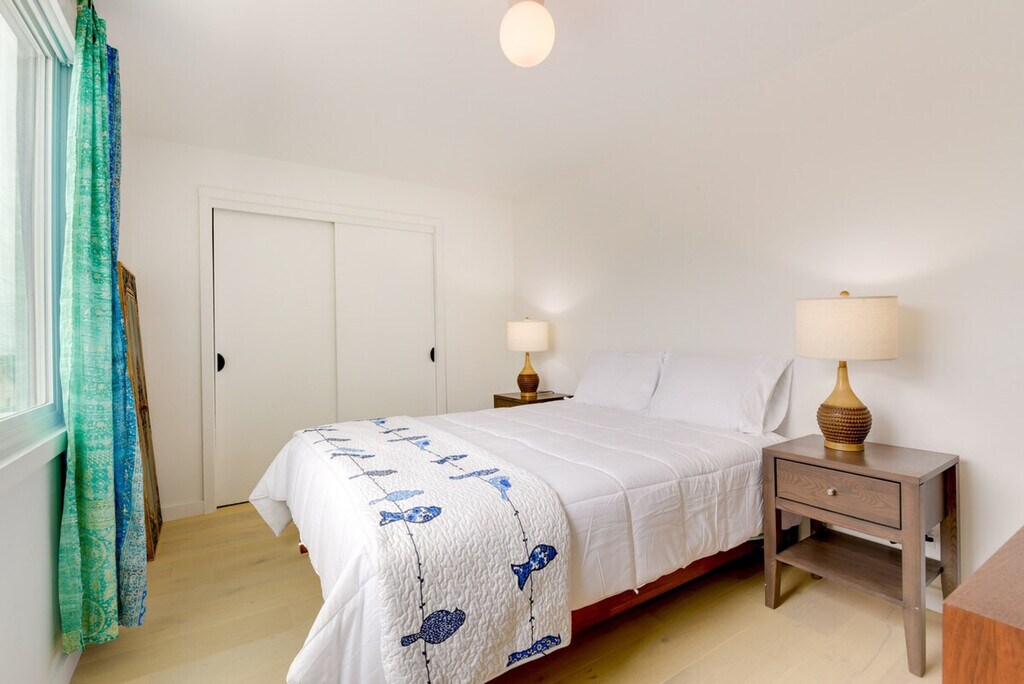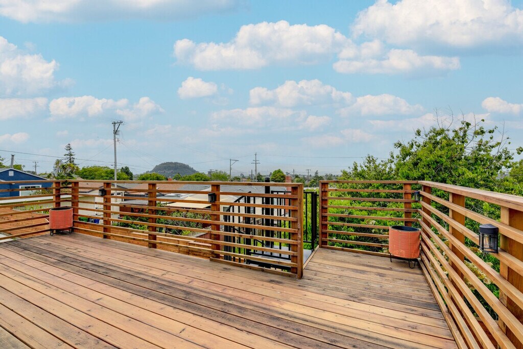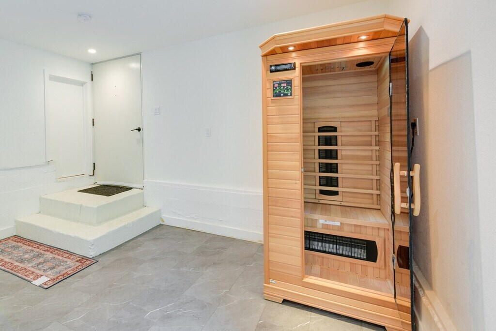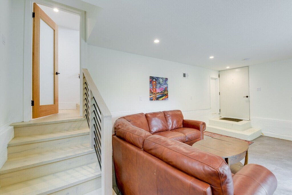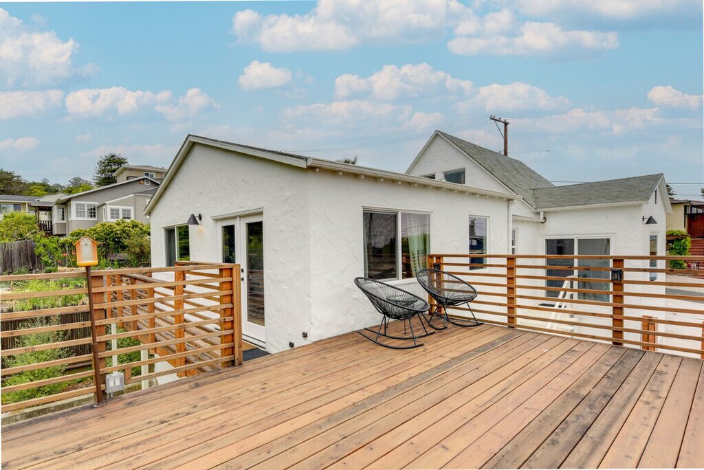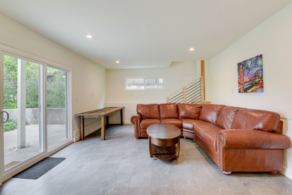 Feel blissfully at home in this spacious 2,040 sq ft, 3-bedroom, 2.5-bathroom home nestled in the hills of El Cerrito. With breathtaking San Francisco Bay views, this property is just steps from downtown, a short ride from Berkeley, and 16 miles from the Golden Gate. After a fun-filled day, unwind in the sauna or relax on the private deck, complete with sweeping views of the bay. This home offers a bright and modern decor with two living areas and smart TVs with cable for entertainment. The chef's kitchen is equipped with all major stainless steel appliances, including a dishwasher, wine fridge, Keurig coffee maker, and toaster, along with cooking basics, dishware, flatware, and spices. Enjoy meals at the dining table under a beautiful chandelier. The property is pet-friendly with a $250 fee plus taxes and fees. Parking is available in the garage for one vehicle and on the driveway for two vehicles. Situated in the hills of El Cerrito, this home is conveniently located just steps from downtown, a short ride from Berkeley, and 16 miles from the iconic Golden Gate. The neighborhood offers stunning views of the San Francisco Bay and easy access to local attractions. The property requires stairs for access and is located on the East Bay Hills, offering an amazing view. Be mindful of the steep terrain around the property. Guests will have access to the entire property via self check-in. No smoking is allowed and no events, parties, or large gatherings are permitted. A photo ID may be required upon check-in. The home provides free WiFi and central heating and air conditioning, ensuring a comfortable environment for remote work. A washer and dryer, iron and board, and hair dryer are also available for your convenience. [SI]