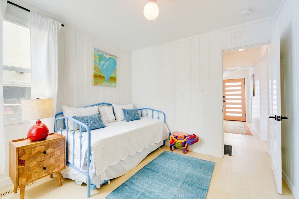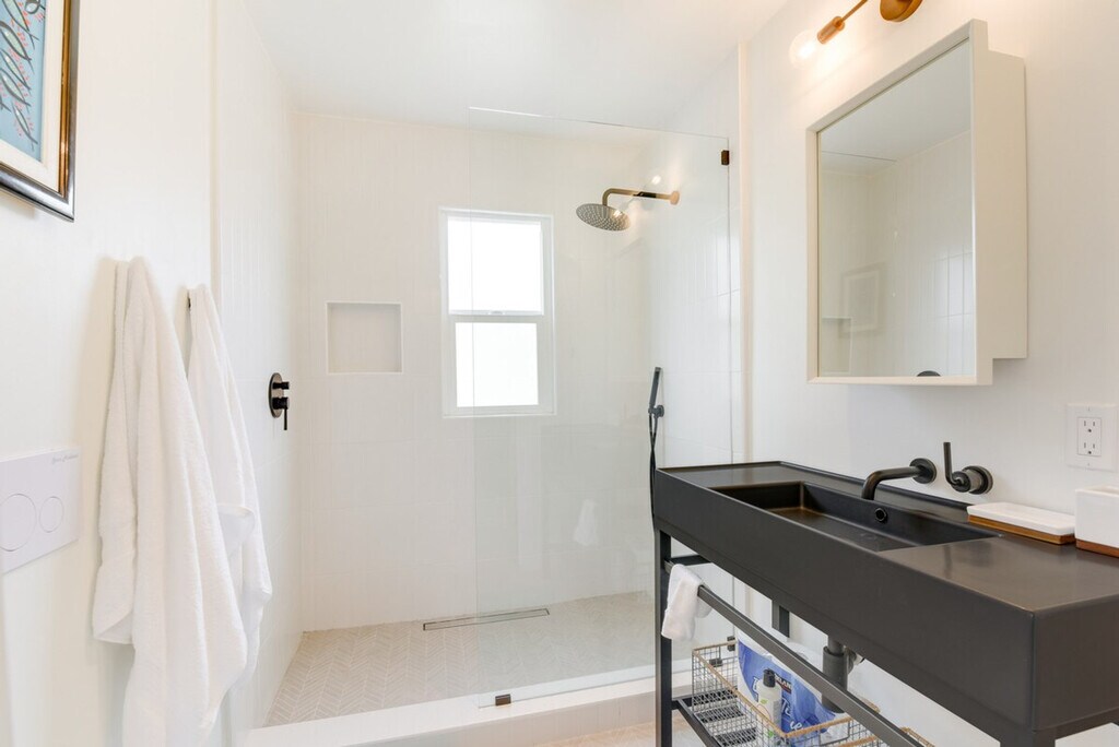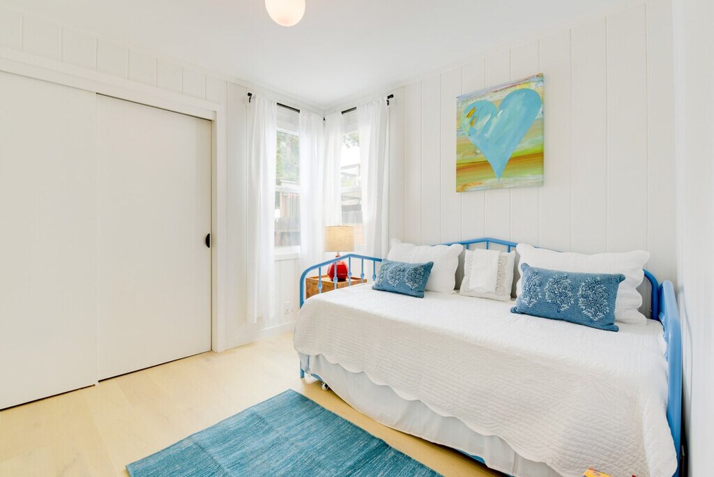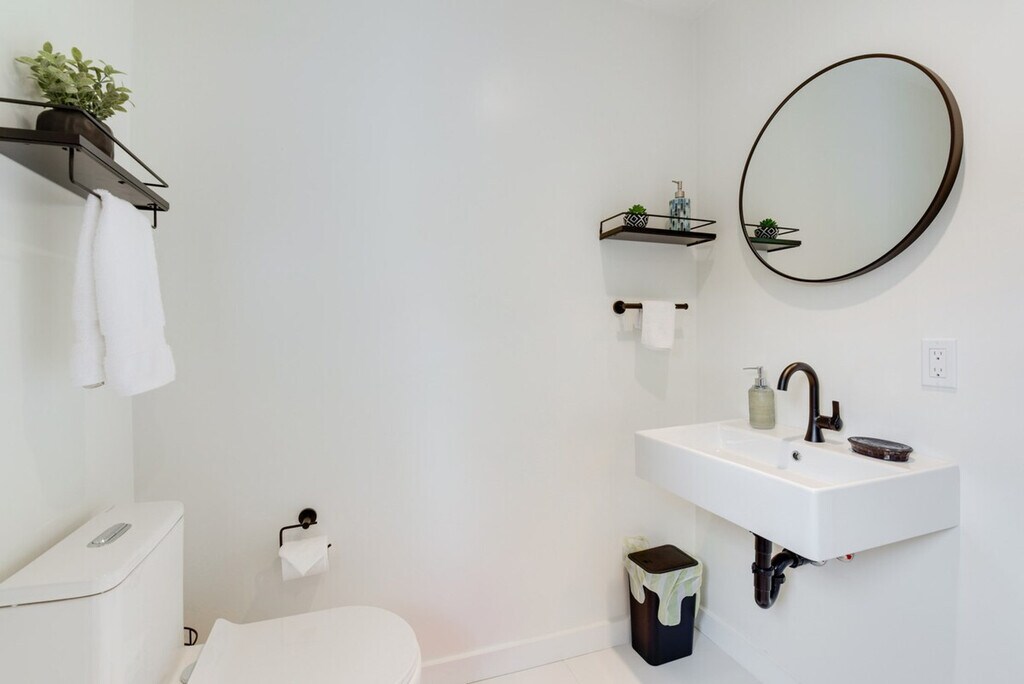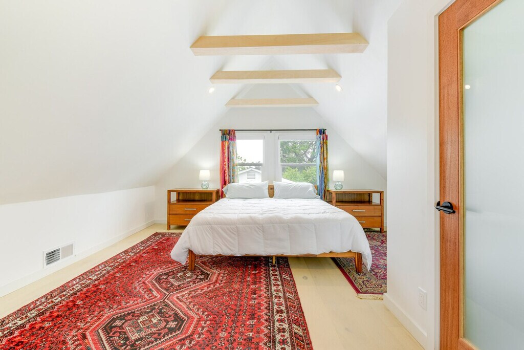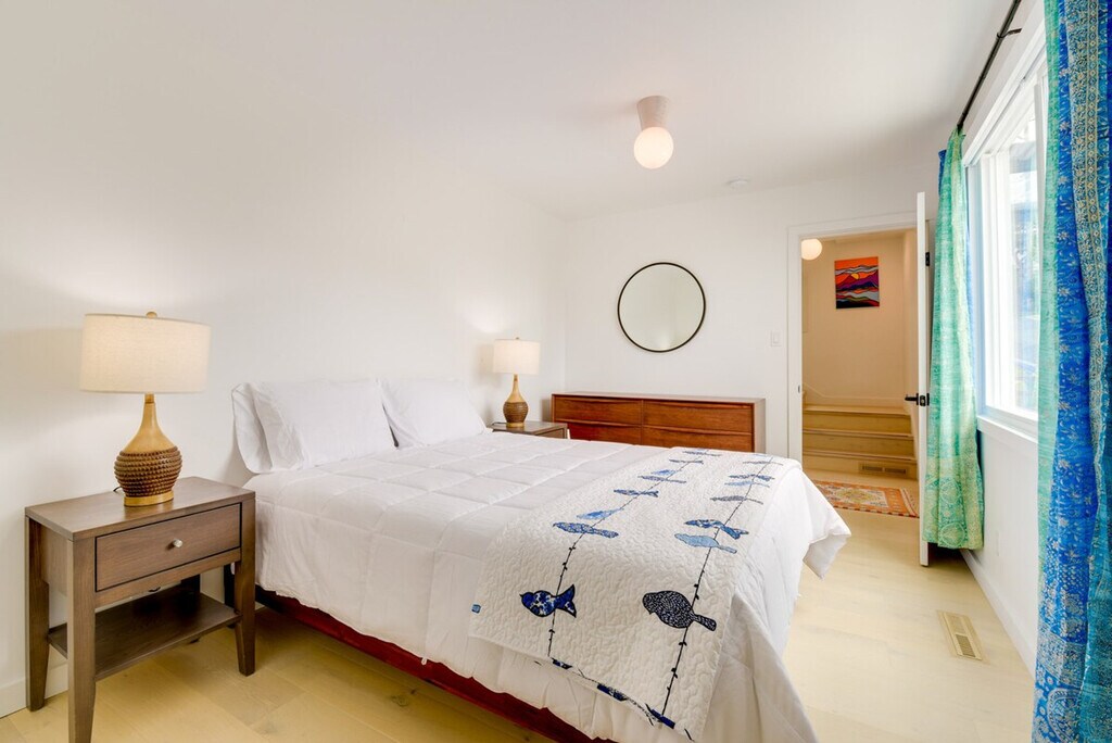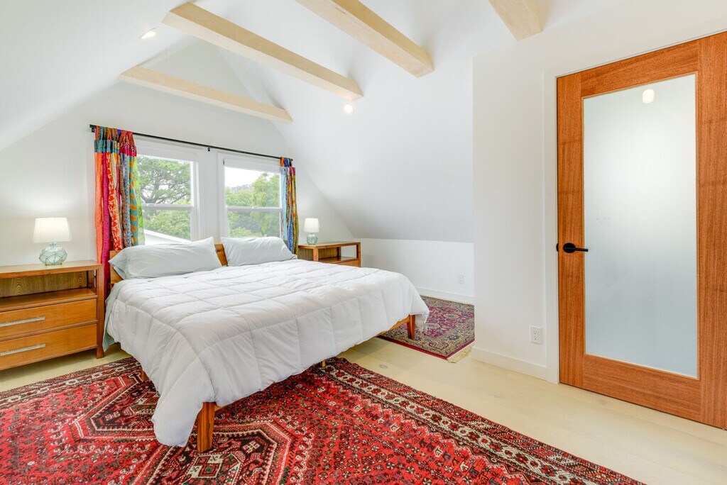 Feel blissfully at home in this spacious 2,040 sq ft, 3-bedroom, 2.5-bathroom home nestled in the hills of El Cerrito. With breathtaking San Francisco Bay views, this property is just steps from downtown, a short ride from Berkeley, and 16 miles from the Golden Gate. After a fun-filled day, unwind in the sauna or relax on the private deck, complete with sweeping views of the bay. This home offers a bright and modern decor with two living areas and smart TVs with cable for entertainment. The chef's kitchen is equipped with all major stainless steel appliances, including a dishwasher, wine fridge, Keurig coffee maker, and toaster, along with cooking basics, dishware, flatware, and spices. Enjoy meals at the dining table under a beautiful chandelier. The property is pet-friendly with a $250 fee plus taxes and fees. Parking is available in the garage for one vehicle and on the driveway for two vehicles. Situated in the hills of El Cerrito, this home is conveniently located just steps from downtown, a short ride from Berkeley, and 16 miles from the iconic Golden Gate. The neighborhood offers stunning views of the San Francisco Bay and easy access to local attractions. The property requires stairs for access and is located on the East Bay Hills, offering an amazing view. Be mindful of the steep terrain around the property. Guests will have access to the entire property via self check-in. No smoking is allowed and no events, parties, or large gatherings are permitted. A photo ID may be required upon check-in. The home provides free WiFi and central heating and air conditioning, ensuring a comfortable environment for remote work. A washer and dryer, iron and board, and hair dryer are also available for your convenience. [SI]
