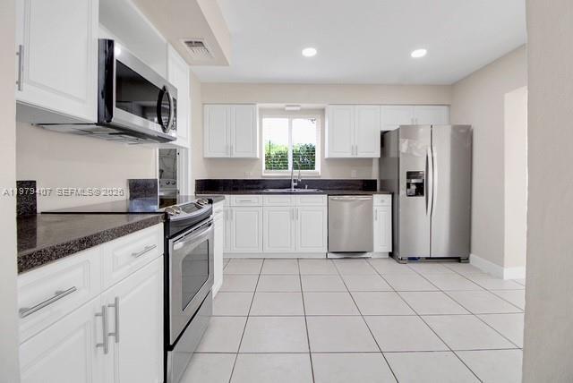 Move-in ready and freshly painted inside and out, this bright and well-maintained home offers comfort, space, and convenience. The property features modern recessed lighting in the kitchen and florida room, brand-new refrigerator and washer. Enjoy a large Florida Room that provides extra living space—perfect for a home office, family room, or entertainment area. The kitchen is bright and functional, and the bedrooms include closets with built-in organizers for easy storage. Additional features include new blinds and full hurricane panel shutters for added storm protection. No HOA. Ideally located within walking distance to restaurants, pharmacies, and the Sunset & 97th Shopping Center, making everyday errands quick and convenient. Tenant is responsible for lawn maintenance. Ready for immediate occupancy. MLS # A11979407