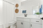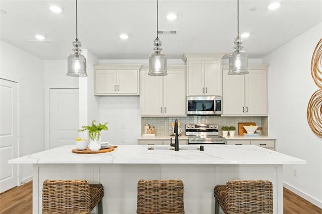This gorgeous and modern two story townhome overlooks a vast tree lined space, and offers many builder upgrades.The first floor features high ceilings, large windows, luxury vinyl plank flooring, mounted flat screen TV, and a large open flow great room set up. The chef's kitchen features quartz countertops, upgraded cabinets, an island, full stainless appliance suite, and pantry. Utility room features front load washer and dryer. The well appointed primary suite features a large spa like ensuite bathroom and an additional flat screen TV. The secondary bedrooms, bathrooms, and small alcove office are also upstairs. The rear entry garage features an EV wall charger and extra storage. Close to the water and area shopping and dining.
