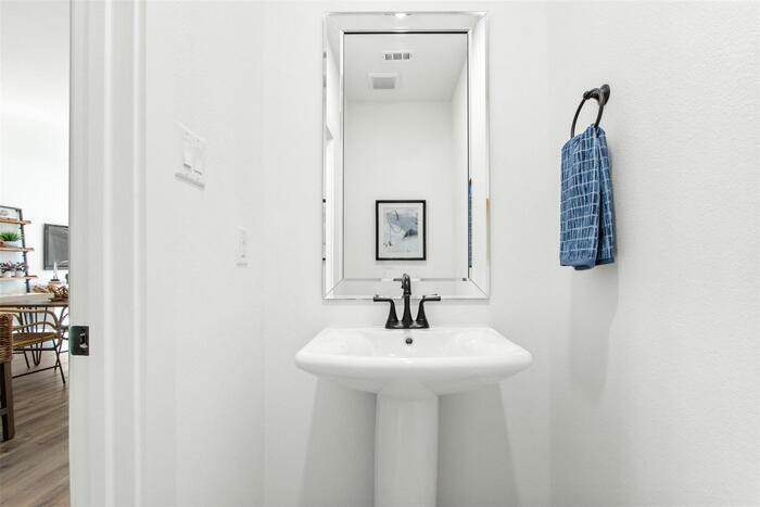 Welcome Home! This almost new two story Mira Lagos townhome is ready for immediate move in, and boasts many upgrades and amenities. Outfitted with an EV charger and added shelving, the 2 car garage is a great addition. The home is equipped with modern luxuries like vinyl plank flooring, elevated staircase, quartz countertops, stainless steel appliance suite, full size front load washer and dryer, furnished home office nook, and 2 mounted flat screen televisions to name a few. Step into the primary suite with ensuite bathroom for a spa like experience. The oversized walk in closet and extra bathroom closet storage are an added bonus. This property is priced to lease quickly, so do not delay! Contact us to schedule a showing.