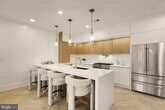 Welcome to Unit 302 at 733 Euclid Street NW, a spectacular two-level penthouse in a meticulously reimagined Second Empire-style landmark. This expansive residence offers four bedrooms, four bathrooms, two glass-enclosed offices, and an impressive 2,952 square feet of living space, thoughtfully designed for both grand entertaining and everyday comfort. At the heart of the home is the high-end Nolte German-designed kitchen, where sleek European aesthetics meet premium functionality. A built-in coffee station, 36-inch industrial Thor range with a pot filler, and Bosch appliances elevate the culinary experience. The family room is designed for seamless entertainment, featuring acoustic panels on the TV wall for enhanced sound quality. Outdoor living is equally impressive. A private patio off the media room creates the perfect retreat, while the primary suite boasts its own balcony for a peaceful escape. Another spacious balcony connects two additional bedrooms, allowing for easy access and extended outdoor enjoyment. The expansive rooftop deck—with fire pits, built-in speakers, and panoramic city views—offers the ultimate space for entertaining or unwinding under the stars. Luxury finishes abound, from custom molding and high-end closets to 9-inch wide wooden flooring, transitioning to elegant herringbone patterns in select areas. The bathrooms feature designer tile and lighting packages, while the laundry room includes built-in cabinetry and a sink for added functionality. Comfort is personalized with multi-zoned HVAC and NEST thermostats throughout. Parking space equipped with an EV charger is available for rent at monthly fee. Ideally located in the heart of the Pleasant Plains neighborhood, 733 Euclid Street NW offers easy access to Whole Foods, the Columbia Heights Metro, the U Street Corridor, Shaw, and Logan Circle—placing you within walking distance of DC’s best dining, shopping, and cultural hotspots.