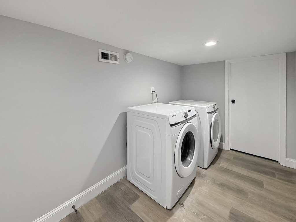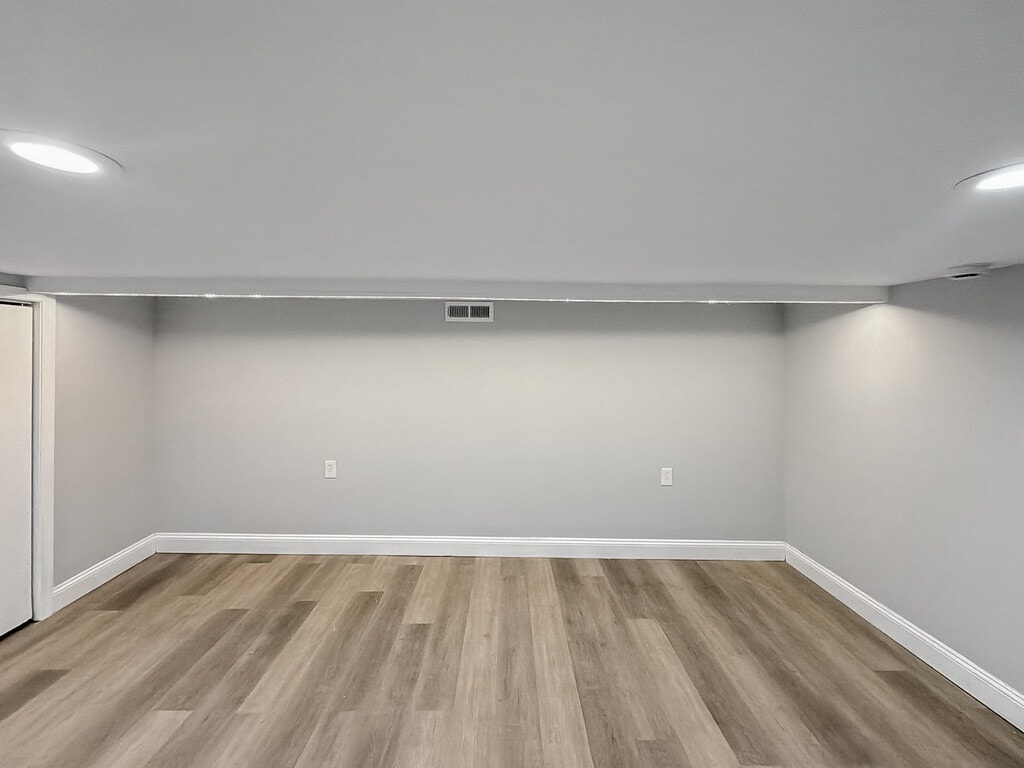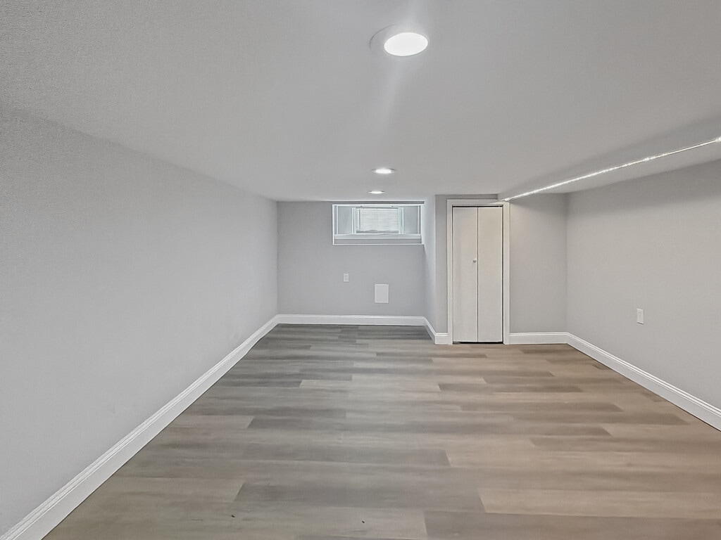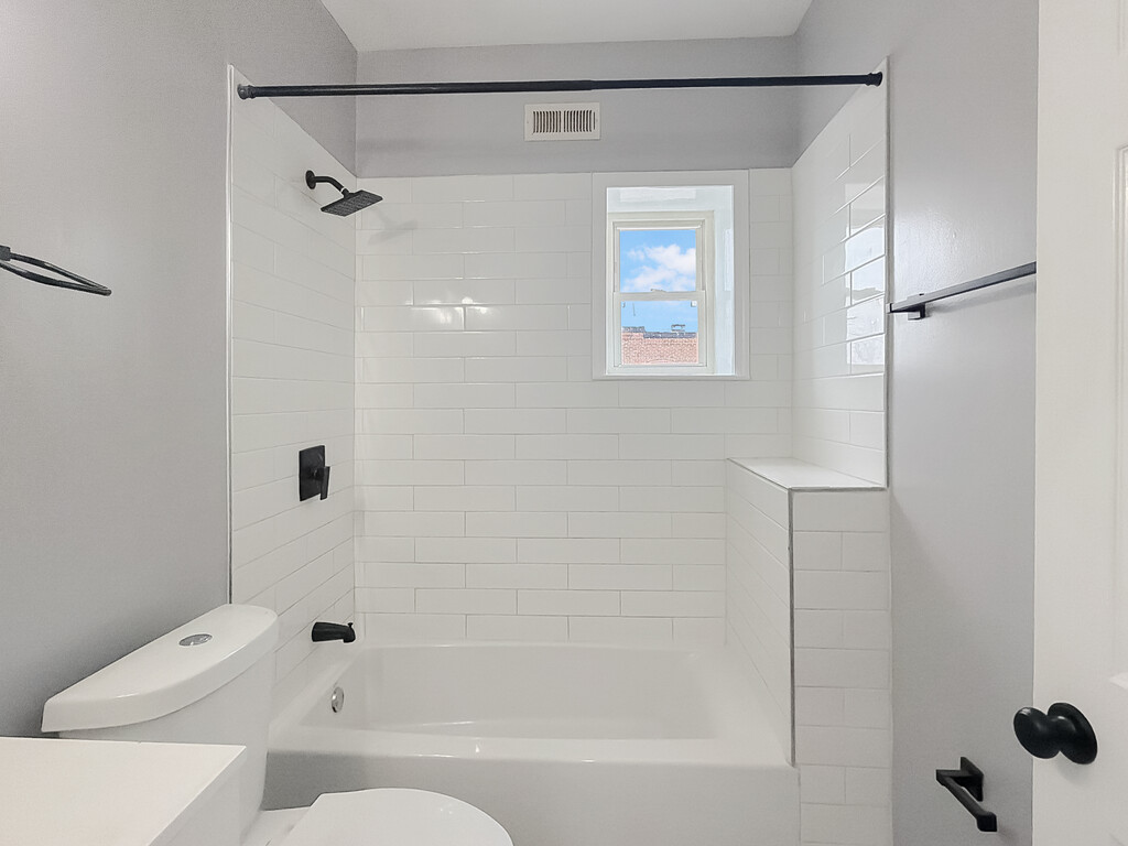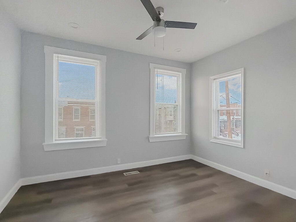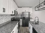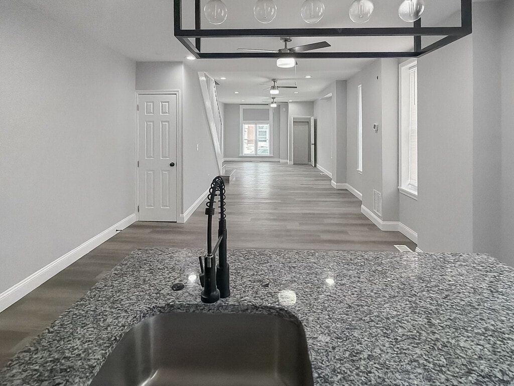 Spacious, fully renovated 4-bedroom, 3-full-bath townhome available for rent in East Baltimore. This multi-level home offers approximately 2,400+ square feet of finished living space, providing rare room to spread out while enjoying modern finishes throughout. The main level features an open-concept living and dining area with luxury vinyl plank flooring, recessed lighting, and a seamless flow into the updated kitchen. The kitchen is equipped with white shaker cabinets, granite countertops, stainless steel appliances, a large center island with seating, and contemporary pendant lighting—perfect for everyday living and entertaining. All public housing and voucher programs welcome! The upper level includes four generously sized bedrooms, including a spacious primary bedroom, along with two full bathrooms finished with sleek tilework, modern vanities, and matte black fixtures. The layout is ideal for larger households, roommates, or work-from-home flexibility. The fully finished lower level offers a large recreation room, dedicated laundry area, utility space, and additional storage—ideal for a family room, home office, or flex space. Additional features include modern lighting, updated systems, central heating and cooling, and a classic brick exterior. Conveniently located near major commuter routes, public transportation, and close proximity to Johns Hopkins and Downtown Baltimore. All Public housing and voucher programs welcome!