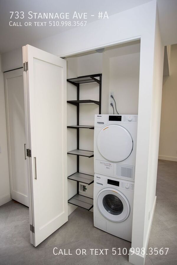 Be the first to live in this fully renovated, never-occupied home just steps from Solano Avenue’s best cafés, shops, and dining. Bright, modern, and thoughtfully designed with tall ceilings, custom finishes, and abundant natural light throughout. The chef’s kitchen features premium Liebherr, Bosch, and KitchenAid appliances, custom cabinetry, and designer fixtures. An open living area opens to a private patio, perfect for coffee or unwinding outdoors. Enjoy year-round comfort with AC + heat pump, Nest thermostat, and Miele in-unit laundry. The spa-style bath offers heated floors, a Toto toilet, and sleek modern tile. The bedroom includes custom built-ins, Elfa/Alpha shelving, privacy glass, and blackout curtains. Residence Highlights • Fully renovated and never lived in • Premium appliances + custom cabinetry • AC, heat pump, Nest, Miele laundry • Heated bathroom floors, Toto toilet, and designer fixtures • Private outdoor patio • Minimum credit score: 730 Prime Albany Location: Steps to Solano Ave, near Trader Joe’s, Memorial Park, BART, and easy freeway access. Bosch Washer And Dryer Full Remodel Heated Bathroom Floors High End Appliances Large Spacious Closests Perfect For Entertaining