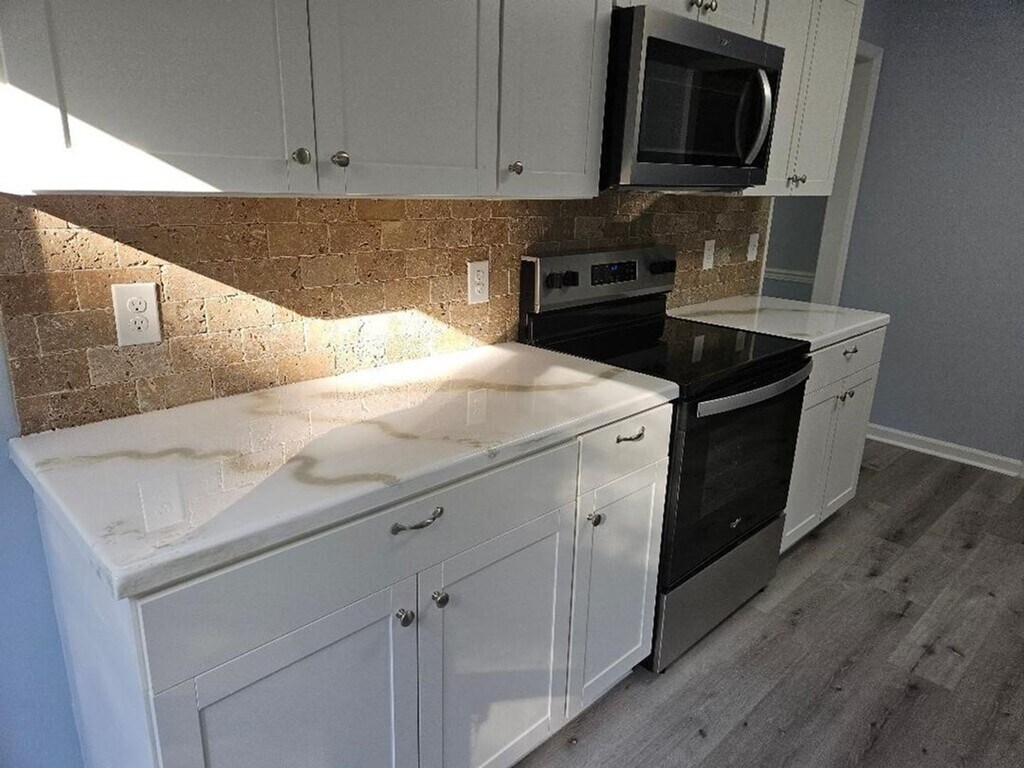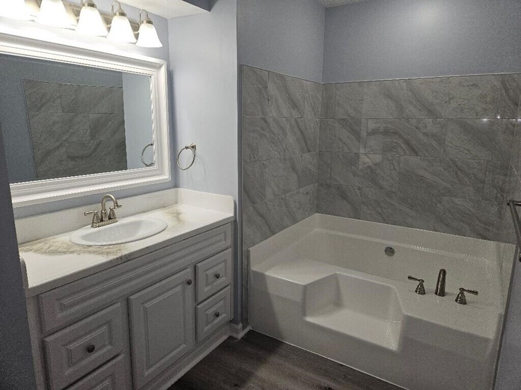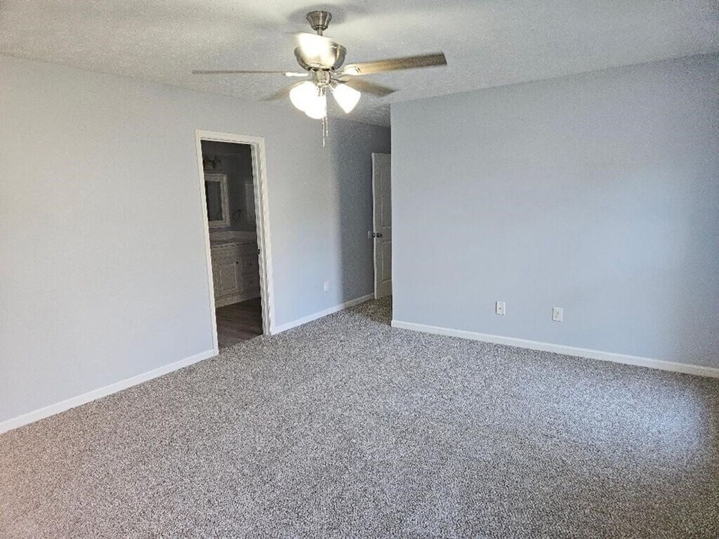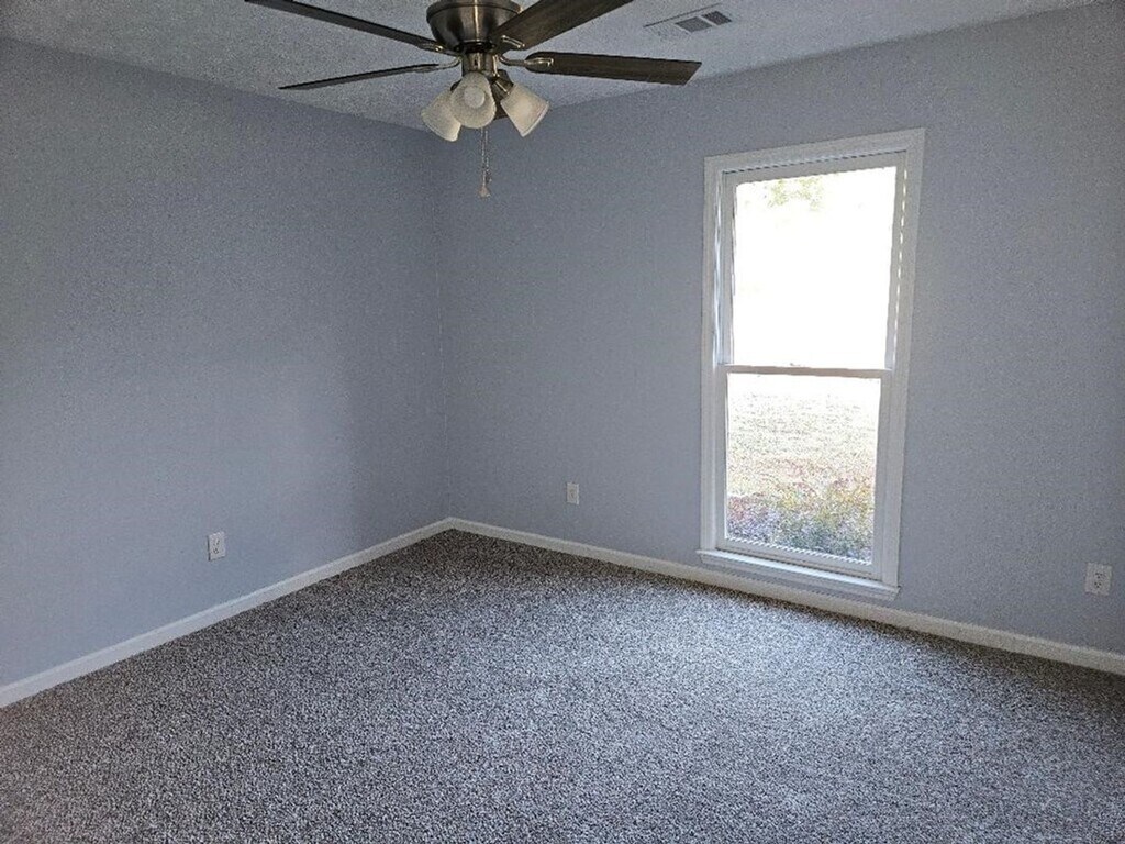 Remodeled 3 bedroom, 2 bath home on large cul-de-sac lot. Foyer with closet opens to great room with fireplace. Dining room with built-in bookshelves. Kitchen with marble countertops, stainless steel appliances & dining area. Separate laundry room with storage. Split floor plan. Owner's suite features walk-in closet, separate soaker tub & shower & closet. New flooring LPV flooring & carpet. New energy efficient windows. Deck overlooks large, fenced backyard with storage shed. Pets allowed upon owner approval & additional pet fees.