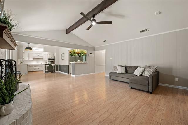 Welcome to this charming 3 bedroom, 2 bath home tucked away in a quiet, established neighborhood right in the heart of DFW! While the setting feels peaceful and private, you’re just minutes from everyday conveniences of grocery stores, restaurants, gyms, a movie theatre, city and dog parks, and ALL the shopping you could want. Target, Chick-fil-A, Kroger, and Walmart are practically around the corner! Step inside and you’ll immediately notice the warmth of hardwood floors flowing throughout the entire home, complemented by fresh paint and an abundance of natural light shining through brand new energy-efficient windows. The recently updated kitchen is a highlight, featuring crisp white cabinetry, sleek countertops, and plenty of room to cook and gather. Cozy evenings are made even better by the wood-burning fireplace- perfect for cooler nights at home. Step outside to the generously sized private backyard, ideal for both play and relaxation. Whether you’re hosting BBQs, entertaining friends, or watching the kids and pets run around, there’s room for everyone to enjoy. A storage shed offers extra space for tools, hobbies, or seasonal items. With no HOA, you’ll also have space for your RV, boat, or additional parking along the extended side driveway. Appliances provided with the home, including kitchen refrigerator and the garage freezer. This Move-In-Ready home offers the perfect blend of comfort, convenience, and charm- schedule your showing today before it's gone!