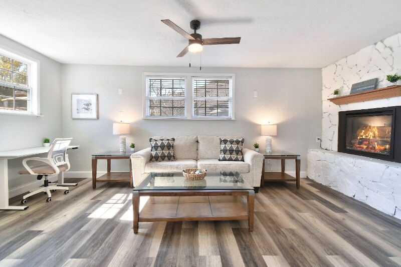 Property Id: 2345318 New to town but need more time to find your dream home or can't decide where to live? Rent this recently renovated and decorated, fully-furnished single family home on a large lot for as little or as long as you need, with a 30-day minimum. This home boasts both an open-concept family room AND living room with fireplace, a large circular driveway, and a screened patio that leads to an expansive private fenced yard. The convenient location is a just few blocks from Boca Ciega Bay, 3 miles to the beach, and just 10 blocks from Central Ave that leads to the Kenwood, Grand Central, and Downtown Entertainment Districts. Managed by a professional property management company that specializes in curating an elevated furnished & flexible rental experience. - 2 bedrooms - 1 king; 1 Queen - Remote workstation - Fully stocked kitchen and dining room - In-unit Washer & dryer - Central AC $400 monthly utility fee - Includes electric, water, WiFi, trash/sewer, lawncare, and/or taxes (if any).