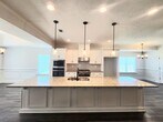 Available for September occupancy. 5 bedroom,3.5 bath ranch home with fenced backyard in Kelarie subdivision! Covered front stoop leads to foyer with coat closet. Large great room with gas fireplace,storage closet,trey ceiling and ceiling fan,open floor plan with kitchen and dining room. LVP flooring throughout the living space,bathrooms have tile floors and carpet in the bedrooms. Spacious kitchen with stainless appliances,tile backsplash,granite counters,gas range with vent hood plus built in electric oven and microwave,large island with sink and overhang breakfast bar for additional seating. Adjacent breakfast area with storage closet and decorative lighting,formal dining area on the other side of the kitchen with wainscotting and decorative lighting,large window overlooking backyard. Primary suite located off the great room through a short hall with storage closet. Primary suite has trey ceiling,ceiling fan,lots of natural light,2 large walk in closets,and en suite bath with granite counters,dual sink vanity,separate soaking tub and walk in shower with tile surround,water closet. Separate hallway off great room leads to spacious 2nd,3rd,and 4th bedrooms,half bath and full hall bathroom with stone counters and tub/shower combo. Large loft bedroom with its own en suite bath off the breakfast nook. Large laundry room with hanging rack and cupboard. 2-car garage with sprinkler system. Security system through ADT can be activated by tenant. Covered,screened patio with ceiling fan and uncovered patio for grilling in large fenced in backyard. #goodtoask