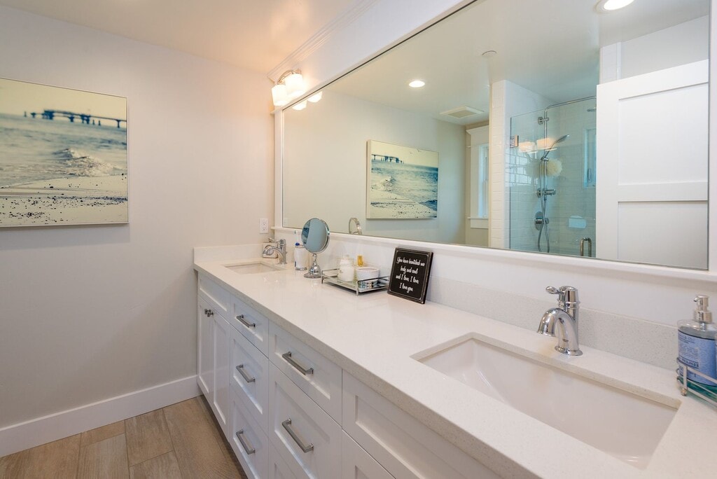 Long term lease offered, available furnished or unfurnished, this impeccably decorated Coronado beach townhome, built in 2015, is ideally situated in the heart of the Village. Located just 1.5 blocks from the Library and Spreckels Park, the home is also a short walk to shops, restaurants, and only 4.5 blocks from Coronado’s beaches and the Hotel del Coronado. This spacious four-level townhome offers 4 bedrooms, 3.5 bathrooms, and two separate living areas. A private, fenced front yard and welcoming front porch creates the perfect setting to relax and enjoy Sunday Concerts in the Park. The front Dutch door opens to the main level, featuring a formal living room with a gas fireplace and smart TV, a dining area, powder room, and a beautifully appointed kitchen complete with breakfast bar, wine storage, pantry, and high-end stainless steel appliances. The main floor also provides access to the tandem two-car garage and a convenient drop zone area leading to the expansive basement level. Downstairs, you’ll find a large family room with a smart TV, a laundry room, full bathroom, and a bedroom furnished with a queen bed. The second floor includes a full bathroom, a secondary bedroom with a queen bed, and a spacious primary suite with a California king bed, two closets, and an elegant en-suite bathroom with dual vanities and a large shower. The top floor is arranged into two separate wings. One wing includes a full-size bed, while the other offers a queen-size bed, reading nook, and small deck overlooking the Village. Air conditioning is included. Sleeps 6–8. 1–2-year lease term option