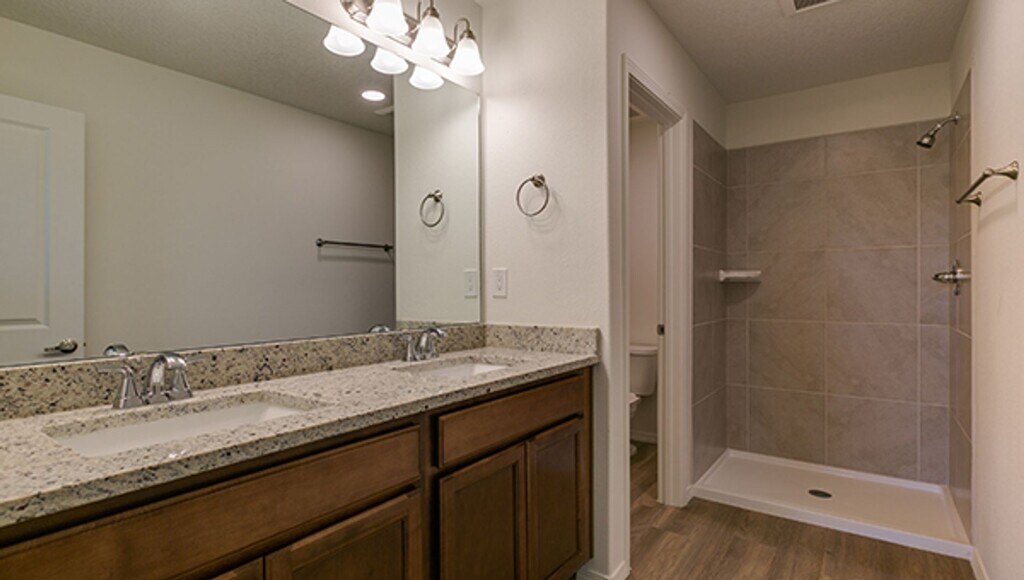 You’ll love this brand new, spacious townhome in a great new neighborhood that is Ready NOW! The First floor is an open floorplan with kitchen, dining area, powder bath and living area. Living area features glass sliders opening to a spacious back patio. The second floor features all three bedrooms and the laundry room. The Primary bath features dual sinks, shower and separate commode area. Second upstairs bath features tub/shower. Large closets throughout. Primary bedroom has walk-in closet. Solid granite countertops in Kitchen and baths w/4? granite backsplash. Luxury vinyl tile on entire first floor, bathrooms and laundry room. Front and rear landscaping. Recessed LED lighting. Tankless water heater, programmable thermostat and much more. Many energy efficient features.