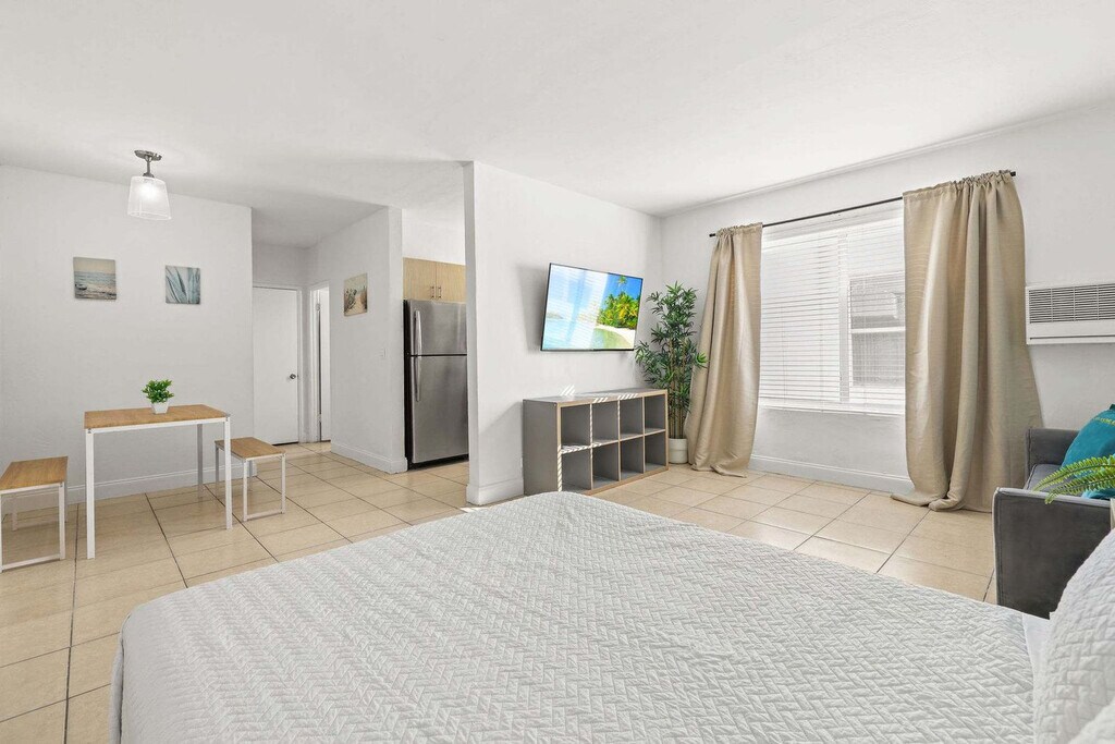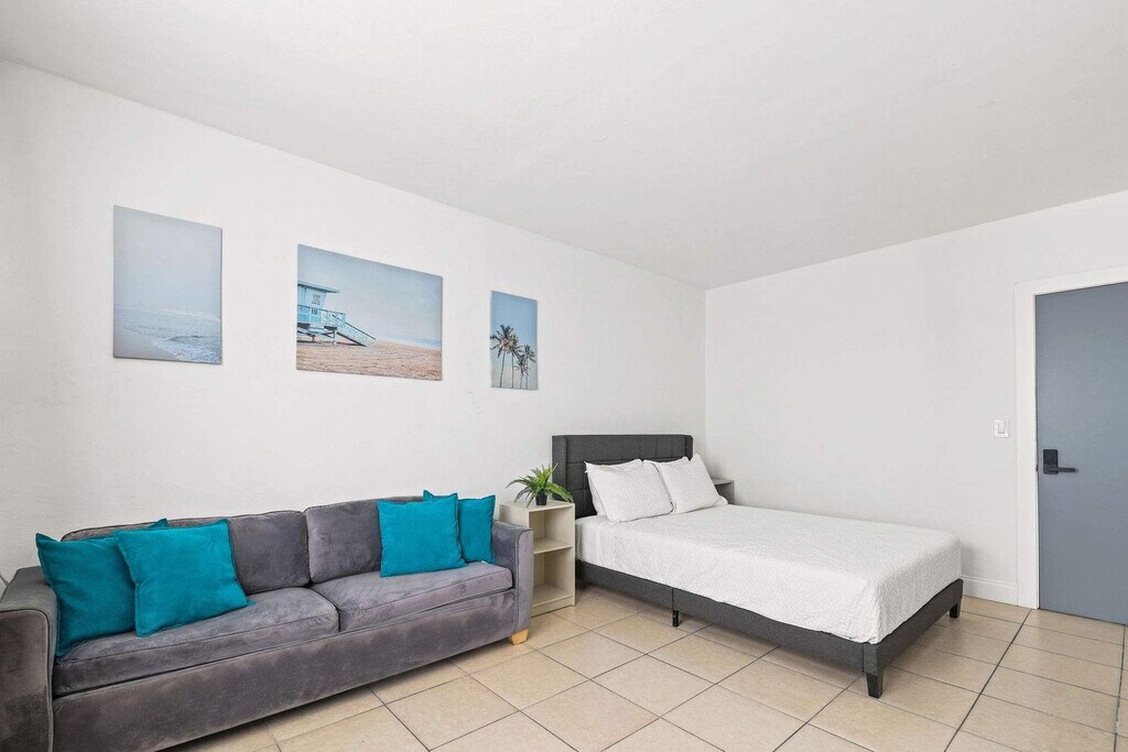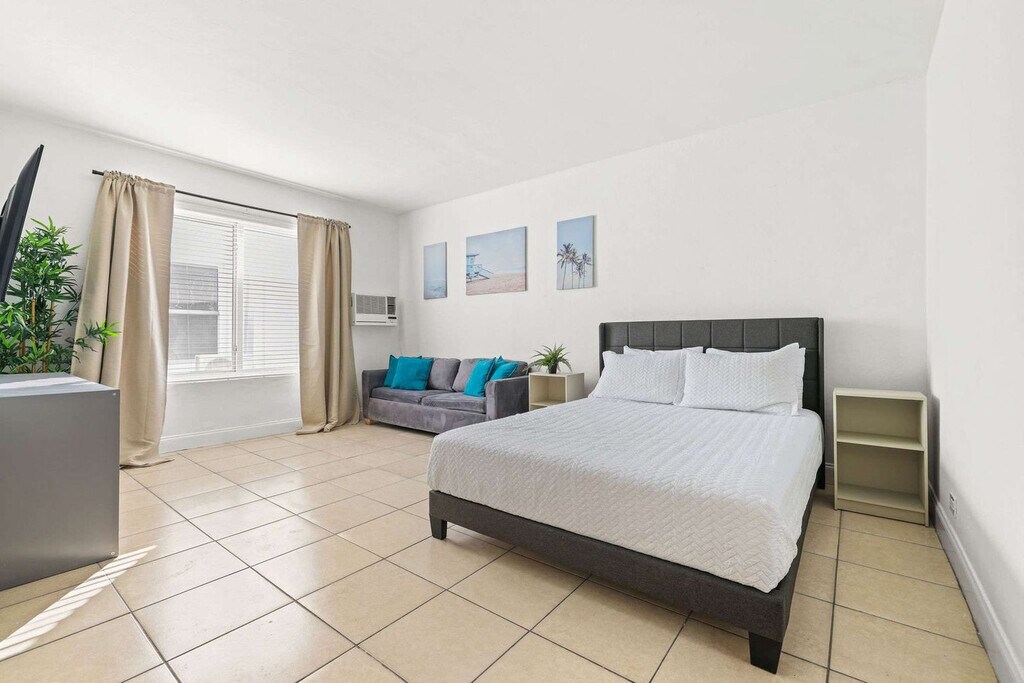 Your dream Miami Beach escape awaits at this spacious apartment near the shore. With a king-size bed in the bedroom and a sofa bed in the living room, it comfortably accommodates families or groups. Enjoy a fully equipped kitchen and a prime location just steps from the beach, dining, and entertainment, perfect for creating unforgettable memories. This inviting apartment offers a blend of style and functionality. The bedroom boasts a luxurious king-size bed, while the living room features a sofa bed for extra guests. The fully equipped kitchen makes meal prep a breeze, and the full bathroom adds convenience. Bright and airy, this apartment provides everything you need for a relaxing Miami getaway. Discover the vibrant pulse of North Shore. Immerse yourself in the local scene with trendy cafes, lively bars, and world-class dining just moments away. Stroll along the pristine beach, soak up the sun, and enjoy the ocean breeze. Explore the vibrant art scene, discover hidden gems, and experience the true essence of Miami Beach. Miami Beach offers a diverse range of transportation options to accommodate various budgets and travel preferences, including the free Miami Beach Trolley, Metromover, Metrorail, Metrobus, ride-sharing services, taxis, bike rentals, walking, and water taxis. Quiet hours are after 10:00 pm. Only guests 25 years or older are allowed unless accompanied by a responsible adult. No parties or events are permitted, and only registered guests can stay overnight. Vehicles parked in violation of parking rules are subject to immediate towing. [SI]