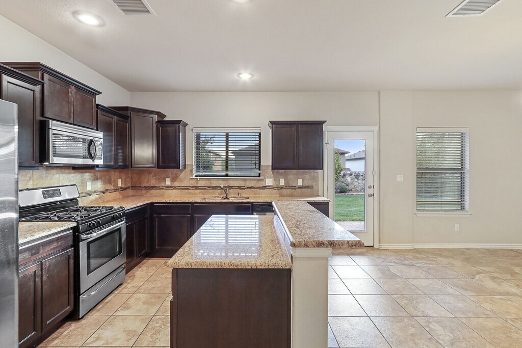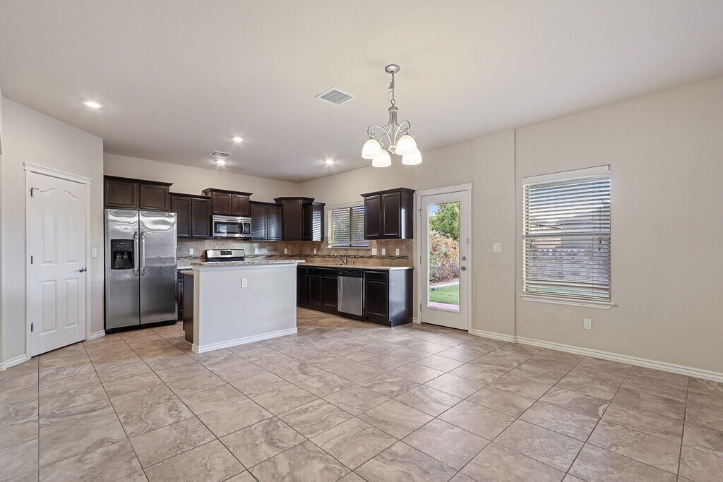 This delightful 4-bedroom, 2-bathroom residence offers a perfect blend of style, comfort, and convenience. The home boasts tile flooring downstairs, ensuring both durability and easy maintenance, while plush carpet upstairs adds a cozy touch to the bedrooms. The kitchen features stainless steel appliances and recessed lighting throughout enhancing the ambiance and highlights the home's features. The refrigerated air conditioning system ensures you stay cool year-round. Situated minutes from shopping, dining, and entertainment options, this home offers both convenience and lifestyle. Enjoy quick access to local amenities while being just 30 minutes away from Ft. Bliss, making it an ideal location for military personnel. Small pets are negotiable. If moved in before the end of the year with signed lease and paid security deposit, first month half off.