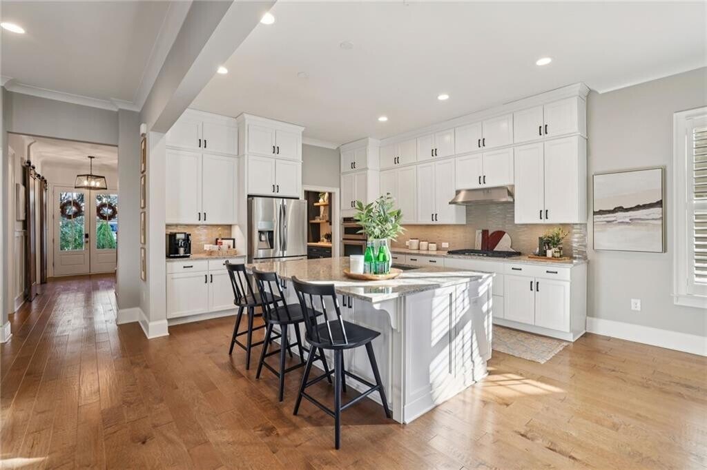 Rare single family rental opportunity in Vickery with a golf cart. Located on a charming street in the heart of the community,this beautifully maintained home offers timeless design,thoughtful upgrades,and flexible living space. The open,light-filled floor plan features inviting gathering areas,a rocking chair front porch,and a furnished screened porch with a gas fireplace and built-in grill—ideal for relaxing or entertaining. A carriage house adds exceptional versatility and can serve as a sixth bedroom,guest suite,media room,or private office. The main home includes five bedrooms,with one bedroom and full bath conveniently located on the main level. Elegant trim details,hardwood floors on the main level and upper hallway,and new designer lighting throughout create a warm,refined atmosphere. The bright kitchen is designed for both function and style,featuring floor-to-ceiling cabinetry,a walk-in pantry,quartz countertops,a large island,and a custom butler’s pantry with a beverage cooler,open shelving,herringbone backsplash,and natural wood counters. The renovated primary bathroom offers a spa-inspired retreat. Residents enjoy access to Vickery’s extensive amenities,including approximately 75 acres of green space,eight tennis courts,a pool with cabanas,two ponds,walking trails,playgrounds,basketball courts,and open recreation fields. The nearby village center hosts community events such as farmers' markets,movie nights,and seasonal festivals. Conveniently located in South Forsyth near shopping,dining,medical facilities,the Big Creek Greenway,and GA-400 for easy access to Atlanta and North Georgia. The owner is a licensed real estate agent in the state of Georgia. MLS ID 7721671