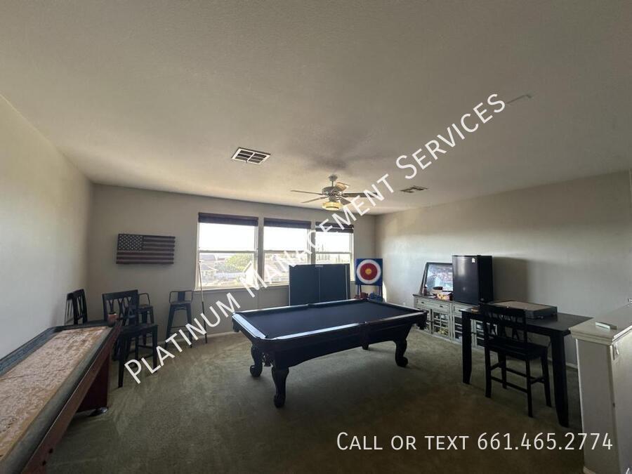 Discover your dream home in the heart of Lancaster, CA! This stunning 3,259 square-foot residence, built in 2001, offers a spacious layout that combines comfort and style. With five generously sized bedrooms and three well-appointed bathrooms, this home is designed for those who value space and versatility. The open living and dining area flows seamlessly, creating an inviting atmosphere perfect for entertaining or relaxing. The heart of this home is the expansive large-family room, featuring a cozy fireplace that opens directly to the modern kitchen. Culinary enthusiasts will appreciate the Corian kitchen countertops, double oven, microwave, and five-burner gas cooktop, making meal preparation a breeze. An upstairs loft adds additional living space, ideal for a home office or recreational area. Step outside to enjoy the full-length covered patio, perfect for outdoor gatherings or peaceful evenings under the stars. The gas firepit with seating area provides a warm ambiance for those cooler nights. Additionally, the property includes gated RV parking, offering convenience for travel enthusiasts. Please note that smoking is not permitted on the premises. Don\'t miss the opportunity to make this exceptional property your own! Enjoy lower energy bills with solar. Appliances & Features: Open living and dining room Large family room with a fireplace that opens to the kitchen Corian kitchen countertops Double oven, microwave, and five gas burner cook-top Upstairs loft Full length covered patio Gas firepit with seating area Gated RV parking Lease Term: 1 year Year Built: 2001 Rental Assistance: No Fifty-five plus: No Multiplex: No