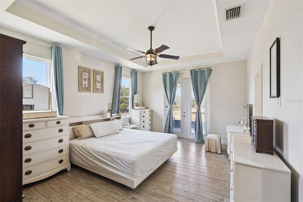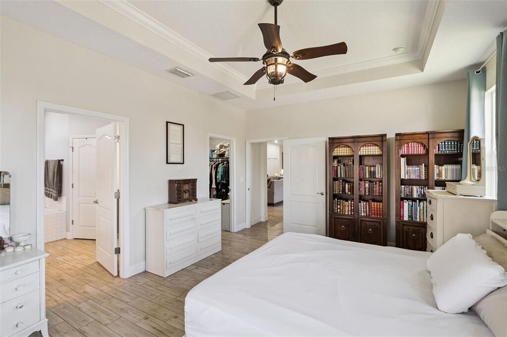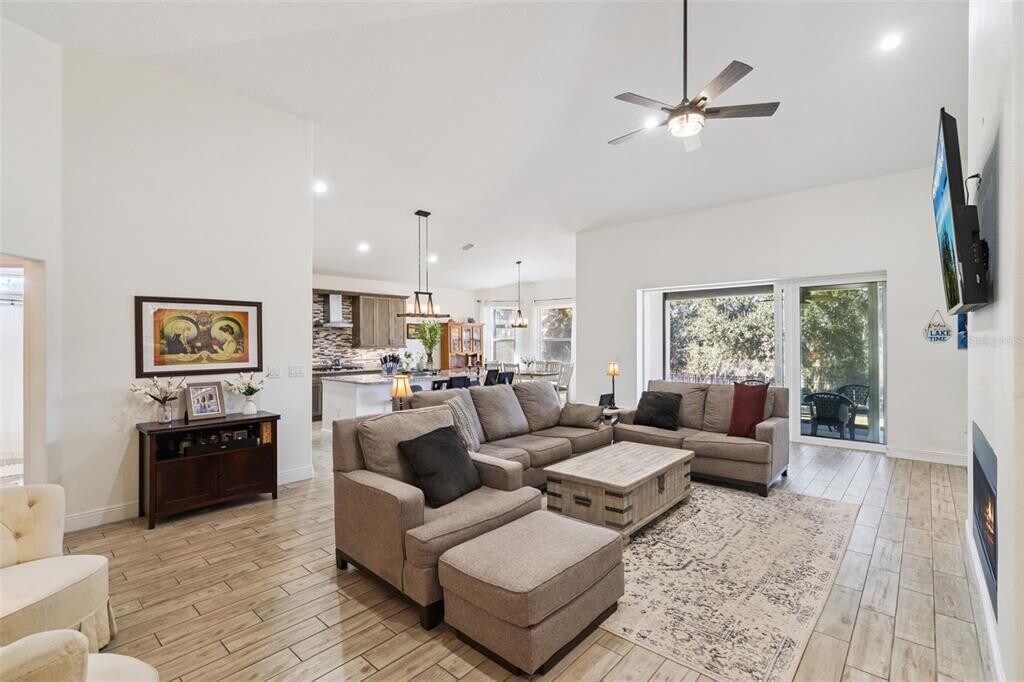 RARE OPPORTUNITY FOR LAKEFRONT ON THE CLERMONT CHAIN OF LAKES with FLOATING BOAT DOCK! Custom built home offers you the opportunity to live your best Florida life. Floating boat dock on the canal to Cherry Lake where you can enjoy all that the Clermont chain of lakes has to offer! The yard is FULLY FENCED,the oversized three car garage includes an enlarged bay for your RV or boat,and dual voltage Electric Vehicle charging station. The patio has gorgeous lake views and a retractable screen. The interior is amazing as well with natural gas fireplace,open floor plan with gorgeous gourmet kitchen featuring stainless appliances,wood cabinets,granite counter tops,and vaulted ceilings adjoining the family room. There is NO CARPET in the home and the plank look ceramic tile is stunning. The spacious primary bedroom has ensuite bathroom with jetted tub,separate shower and a massive walk in closet with luxury built ins! The other bedrooms are situated to allow maximum privacy and space for everyone. Did I mention the large and well appointed laundry room and the expansive lawn with over half an acre of lakefront enjoyment. The views from this home are serene,unspoiled and absolutely gorgeous! All measurements and information are believed to be accurate but tenants should verify. Application Link: MLS# O6379842