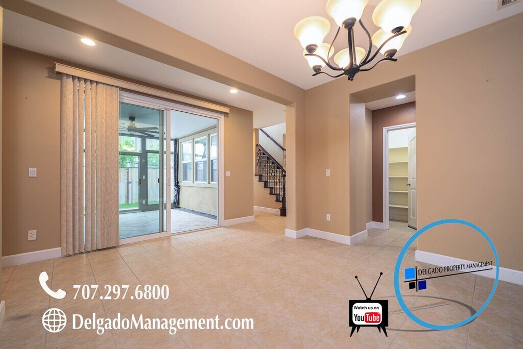 Benicia! Waters End five bedrooms, four baths and over 4,300SF available now! This gorgeous home comes with beautiful tile floors. Enter to front parlor and formal dining rooms. Enjoy the first of two sunrooms. Pass into the spacious family room, with large windows an and a slider to covered back patio, allowing you to enjoy friends and family. Large kitchen enjoys eat in area and it's own enclosed sunroom! One downstairs bedroom, a butler's pantry and two storage pantries round out the downstairs. Upstairs enjoy a massive ensuite. The main bath comes with sunk-in tub with separate shower, his and hers sinks and large walk in closet. Upstairs family room separates the master suite from the 3 other bedrooms found upstairs. Two of the bedrooms share a jack and Jill restroom. Several amenities throughout, including, high ceilings allowing lots of natural light in, gas fireplaces, indoor washer dryer room and large garage. Home is located within minutes of Mathew Turner School, Benicia Middle, beautiful parks, major highways, premium shopping, downtown Benicia, State Park, beautiful trails and much more. Benicia is conveniently located within 40 minutes of Napa Valley, 45 minutes from San Francisco and Sacramento and within 15 minutes from Vallejo Ferry. If you are looking for a beautiful home with lots of upgrades, this is it, call now and set up your private viewing. Pets are welcome! (weight and breed restrictions apply) - Lease Duration 12 months - Must make 3 times the rent as income - $40 Application fee per adult - 2 Years of employment and rental history - Must carry renters insurance throughout tenancy - 650 or above credit score is required - Please submit your applications through Delgado Property Management website - We do not accept Zillow rental applications or any third party applications. - We reserve the right to correct mistakes in advertising.