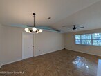 Bedroom Community of Port St John,offering a Large Rental Home with that EXTRA ROOM. This 5/3 has 2 Primary Bedrooms with Ensuite,Walk In Shower. Kitchen centrally located with separate dining room,Slider to Screen Back Porch. Home has Vaulted Ceilings with built in plant shelves up high. Highly Favored Space Coast Jr/Sr High school dist. Close to River boat launch,Views of Launches from your yard,Ocean or Orlando is only about 35 min away...
