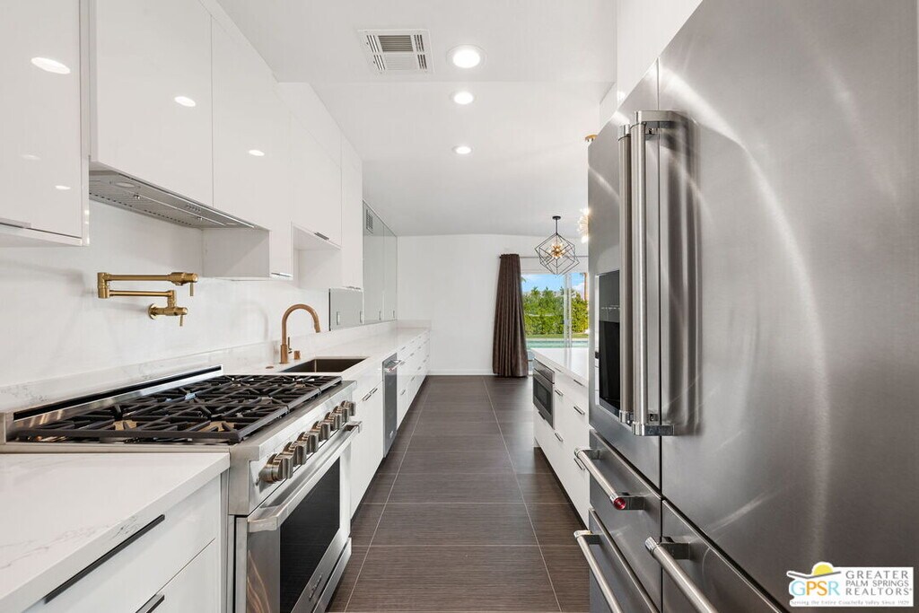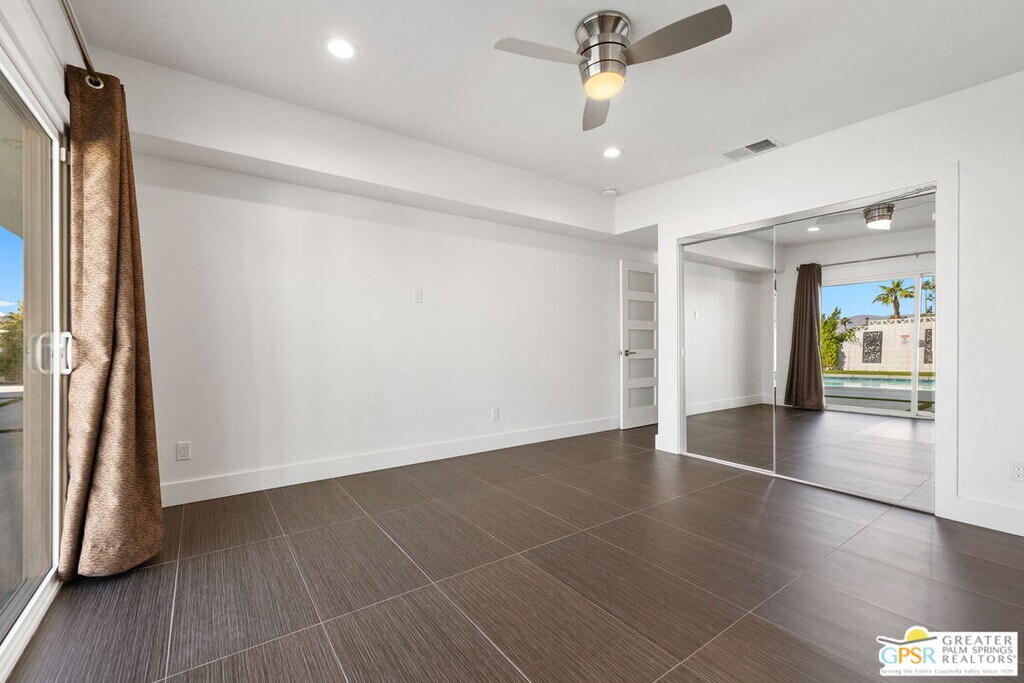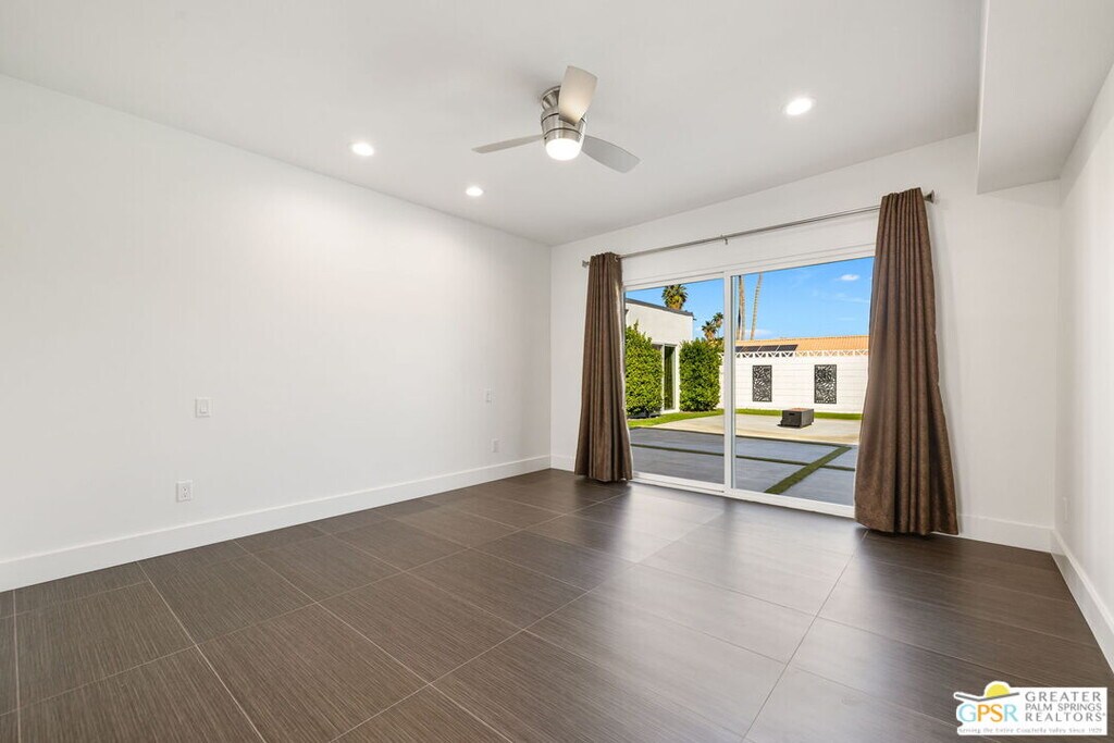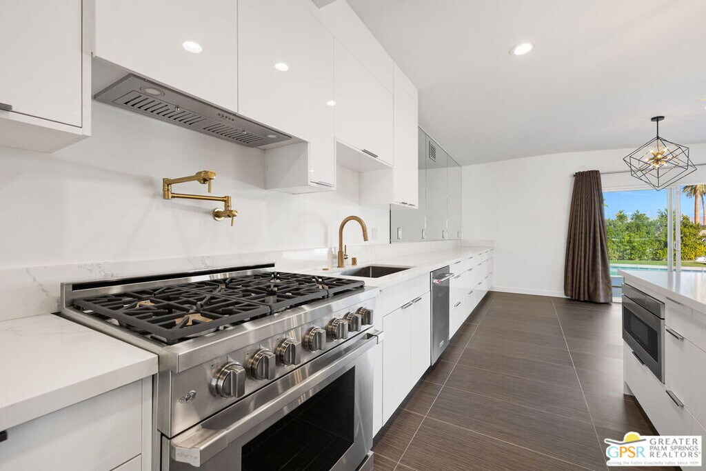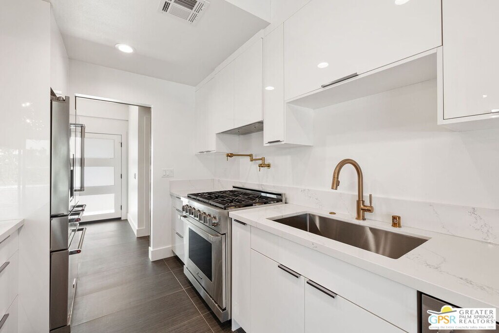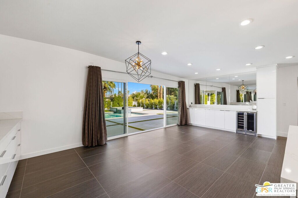 Tucked away on a quiet cul-de-sac in South Palm Desert's highly coveted Silver Spur Ranch, this beautifully reimagined mid-century home captures the essence of modern desert living. Every detail feels intentional, from the clean architectural lines and soft natural light to the effortless connection between indoor and outdoor spaces. What was once a 1962 classic has been transformed into a private, design-forward retreat that perfectly balances style, comfort, and tranquility. From the moment you arrive, the architectural presence and desert landscaping set the tone. Step inside and you're greeted by sunlight pouring through expansive sliders, reflecting off the high gloss cabinetry and mirrored backsplash of the designer kitchen. The open-concept layout flows effortlessly from the living area to the dining area to the pool beyond, creating the perfect setting for quiet mornings or evenings spent entertaining under the desert sky. The great room's custom wood slat feature wall is a statement piece, adding depth and warmth while concealing hidden storage. Every corner of the home blends functionality with refined design, from the large-format tile flooring to the soft neutral tones and natural light enhanced by the home's northern exposure. The primary suite opens directly to the pool, offering a calm and private space for rest and relaxation. A brand new detached casita adds versatility for guests, a home office, or creative studio, designed with the same elevated finishes as the main residence. Outdoors, a newly built pool takes center stage, surrounded by manicured desert landscaping and framed by mountain views. Whether you're floating in the sun or entertaining friends under the stars, this backyard was designed for year-round enjoyment. Located just minutes from El Paseo's boutique shopping, world-class dining, and art galleries, Silver Spur Ranch offers the perfect blend of tranquility and convenience. If you've been searching for a long-term lease that feels like home, this one checks every box for style, privacy, and connection to the best of South Palm Desert. MLS# 25618263PS