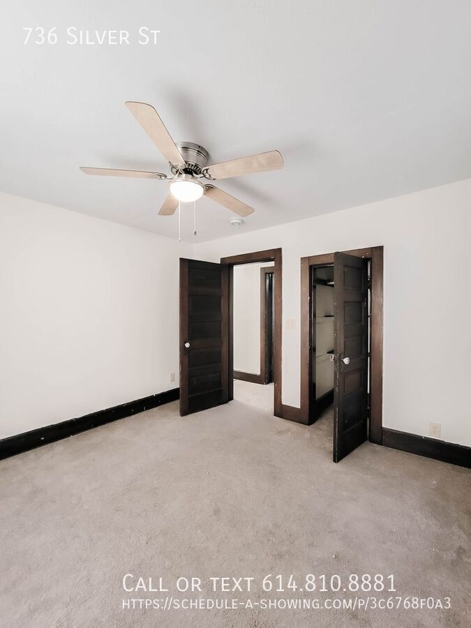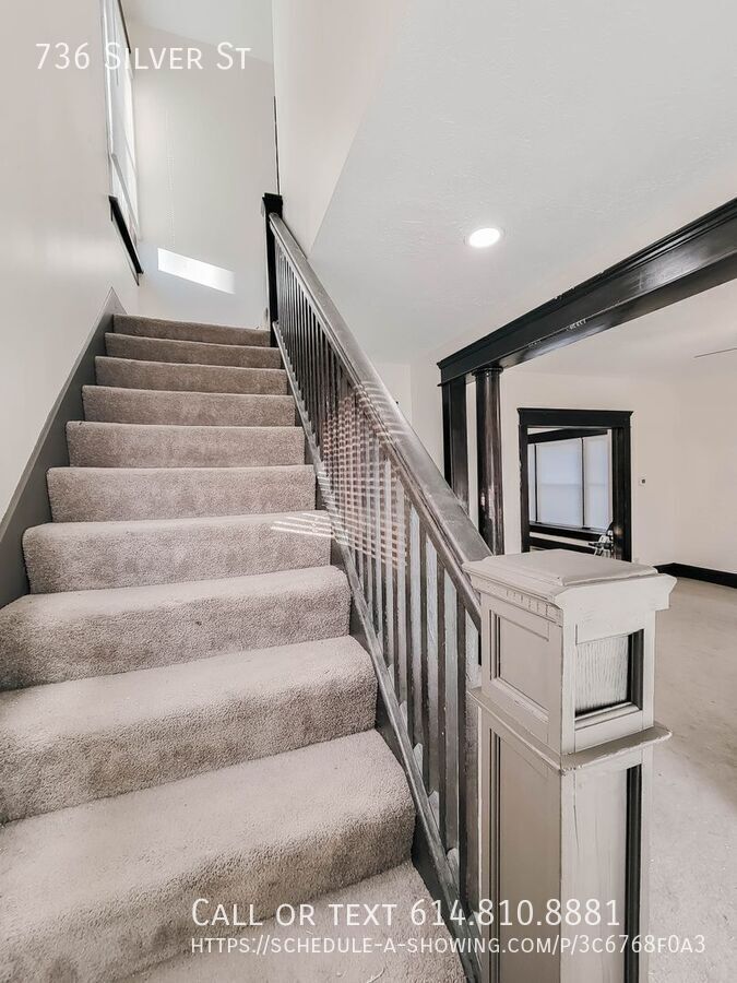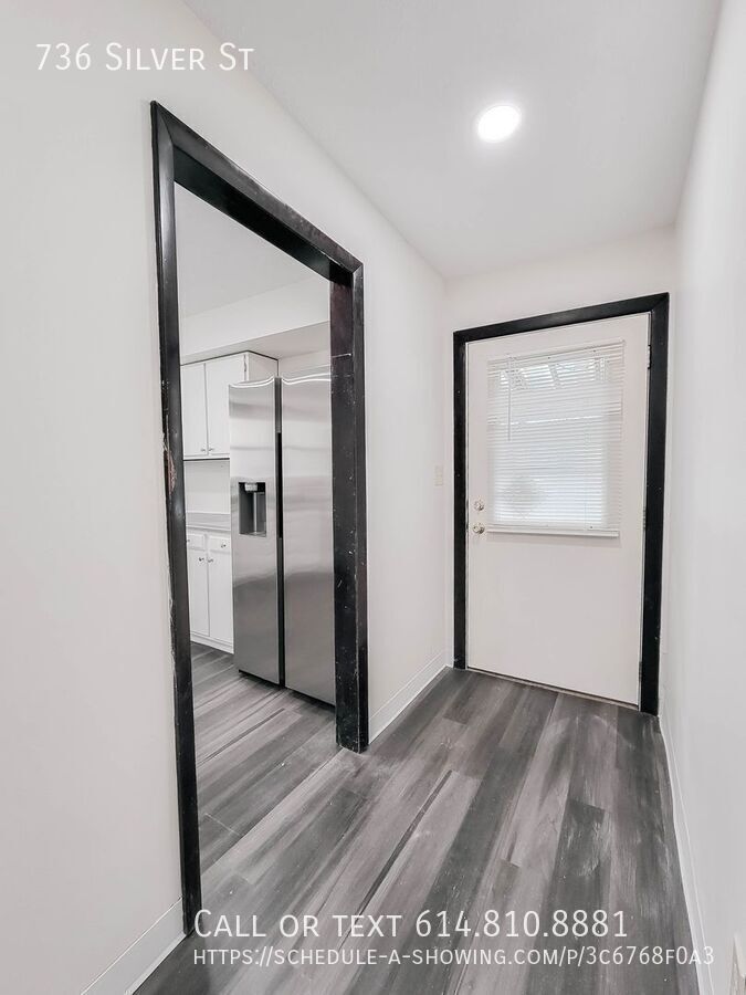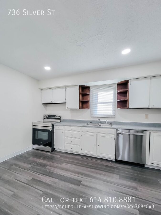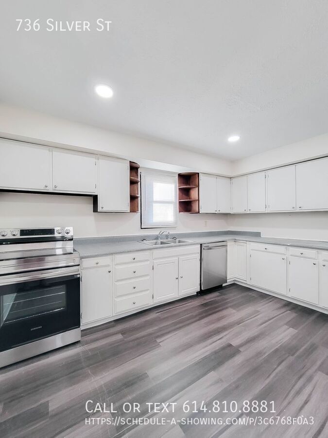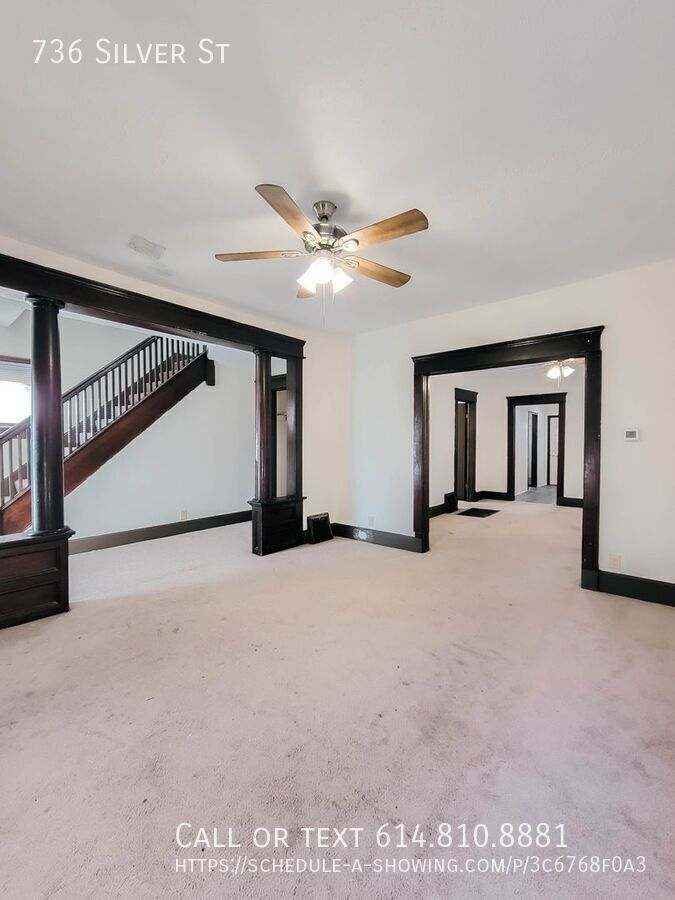 Layout: This home opens up to the foyer with the staircase to the second floor on the left and open entry into the living room on the right. The living room has high ceilings, carpet, and fresh paint that extend throughout. The living room opens to the dining room with a bench seat beneath the window and access to the first floor bedroom. The first bedroom has a large closet and additional shelving with double door access to the basement. The basement has fresh paint and is great for rough storage. Back off of the dining room is a hallway with the last two rooms on the first floor. There is a full bathroom with laundry area with washer dryer hookups (no washer or dryer included). The other room is a great kitchen with lots of counterspace, new stainless steel appliances, plenty of cabinets, and eat-in dining space. On the second floor there are three more bedrooms and a full bathroom with storage closet. Outside the front and back yards are separately fenced in, the a one car garage, new gravel driveway with multiple spaces for off street parking, and a large covered back porch. Stats: 4 bedrooms 2 bath All Renting Ohio Connection residents are enrolled in the Resident Benefits Package (RBP) for $50.00/month which includes liability insurance, credit building to help boost the resident’s credit score with timely rent payments, up to $1M Identity Theft Protection, HVAC air filter delivery (for applicable properties), move-in concierge service making utility connection and home service setup a breeze during your move-in, our best-in-class resident rewards program, on-demand pest control, and much more! More details upon application.