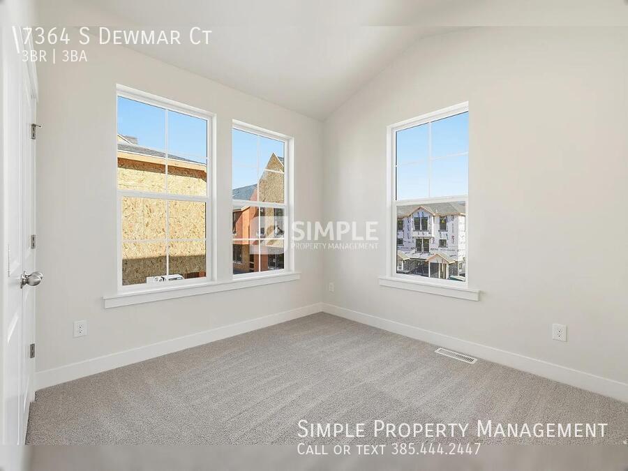 Experience contemporary comfort in the brand new Cottage at Union Meadows community in the heart of Midvale. Built by Brad Reynolds Construction, this thoughtfully designed townhome offers 3 bedrooms and 2.5 bathrooms with a layout that balances style and functionality. A versatile flex space adds extra value, perfect for a home office, workout area, or creative use. Please note: photos reflect finish examples only and may not represent the exact unit. Square footage is an estimate based on builder plans. For navigation, use 350 W California Drive, Midvale, UT 84047. This home is currently under construction. Showings are by appointment only, and for safety, children are not permitted on-site. SCHOOLS: East Midvale Elementary Midvale Middle School Hillcrest High School PARKING: Two garage spaces UTILITIES & SERVICES: Tenant pays gas, electricity, cable, and internet. Landlord pays for water and garbage. PETS: No pets allowed. OTHER: Advertised rent rate based on a 12-month lease. Security deposit equal to one month of rent and is due at lease signing. Includes non-refundable portion of $250. Tenant required to maintain renters insurance at all times. All adults required to apply. $45 per applicant due with application. Lease documentation fee of $50 due at lease signing.