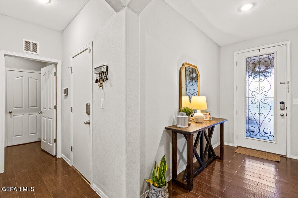 Beautiful one-story home located in a quiet neighborhood. For your convenience,the area is well established near Shops at Outlet Mall,schools,shopping areas,and easy access to Loop 375. This well-maintained property features 3 bedrooms and 2 bathrooms. Ceramic tile and carpet floors throughout the house. Open floor plan,the dining room,living area and kitchen are perfect for those gatherings. Stunning white kitchen with stainless steel appliances,granite countertops,and marble backsplash. Large one-level kitchen island with seating for 2. Master bedroom with walk-in closet and master bathroom with double sink. All bathrooms have granite countertops. The backyard is perfect,large enough for those reunions and summer cookouts. Beautiful landscape,pomegranate and walnut trees planted. You will love to enjoy the best sunset in El Paso by seating on the courtyard with your friends and family. Come visit this gem,it will not last long!