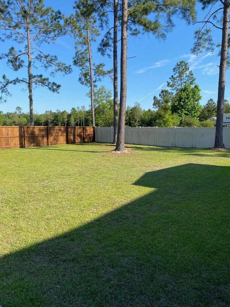 Four bedrooms, three full bathrooms, with an open split floor plan. Kitchen has custom cabinets, granite counter tops, and a tiled back splash. Master bathroom has a double vanity, separate tiled shower and garden tub. This property also has a 3 car garage and a screened in back porch.