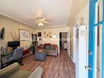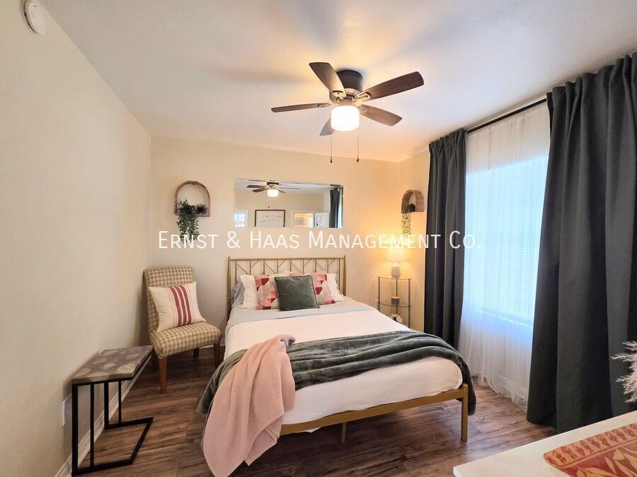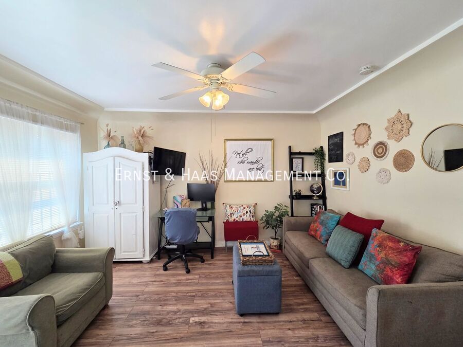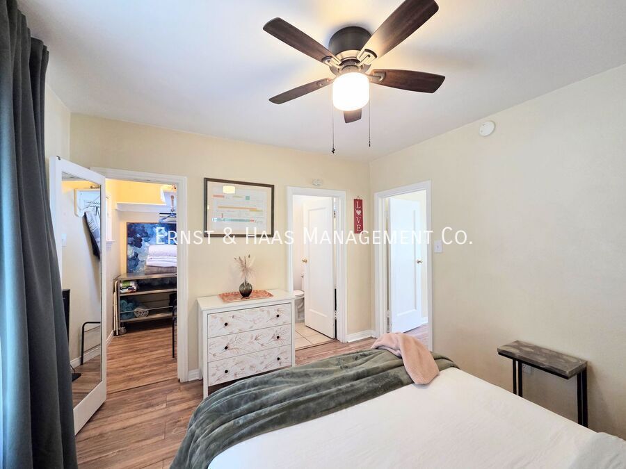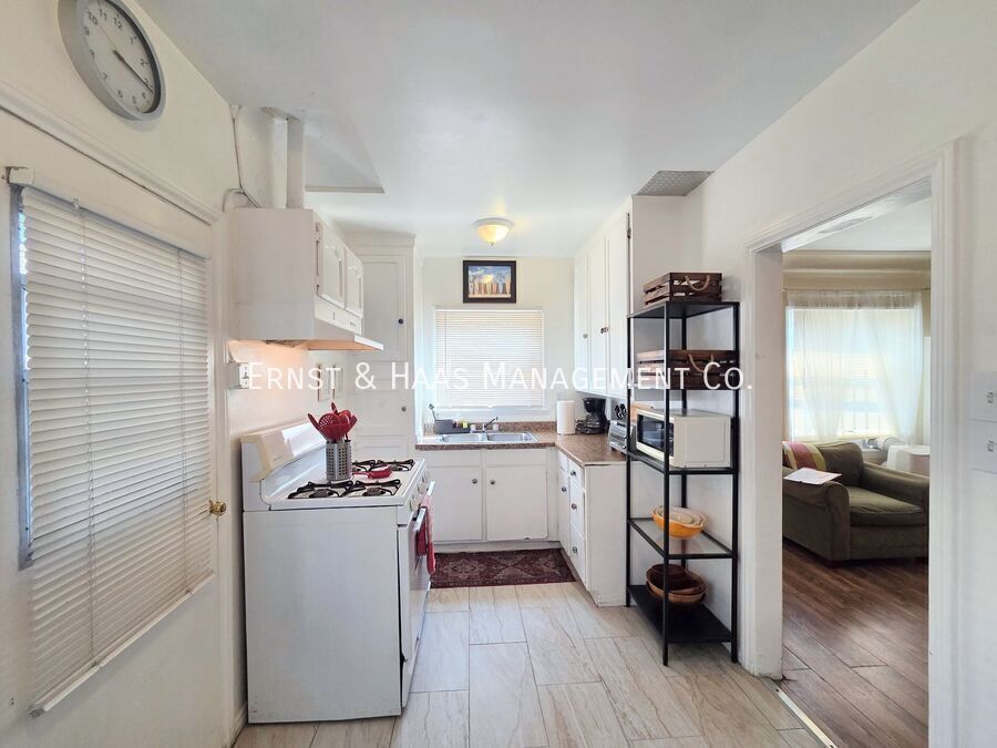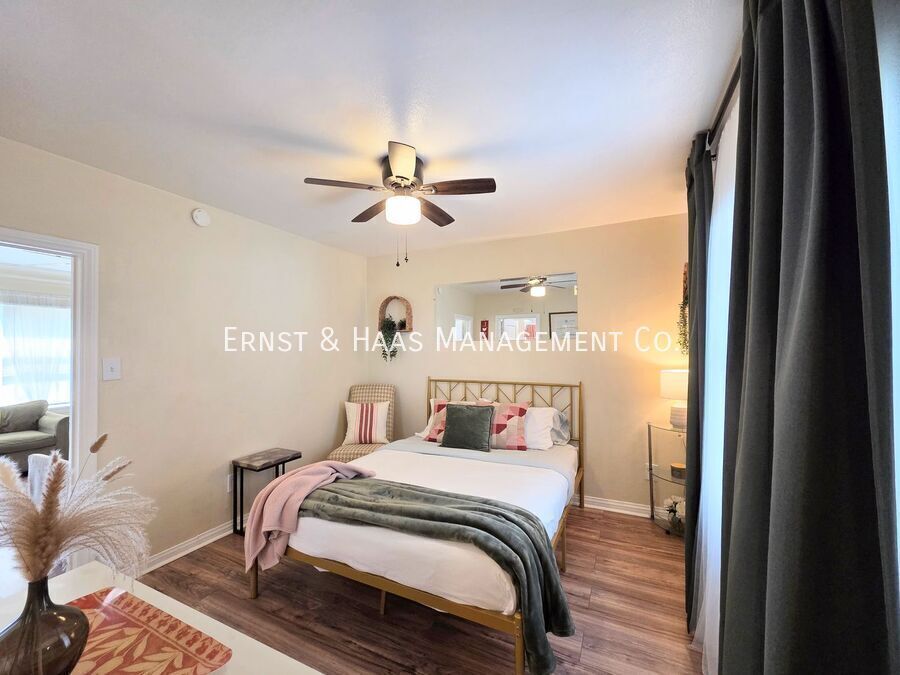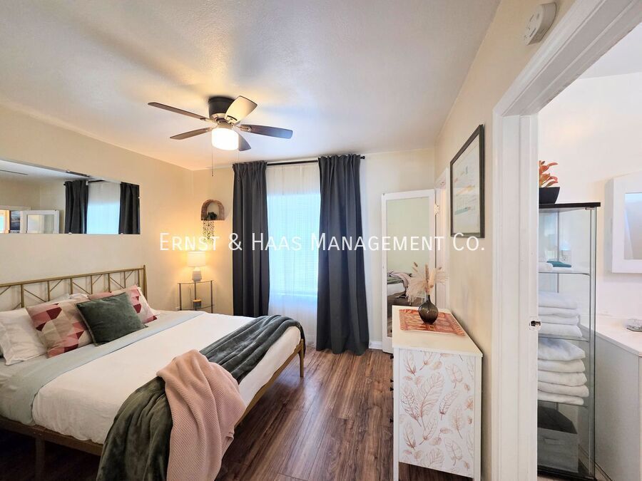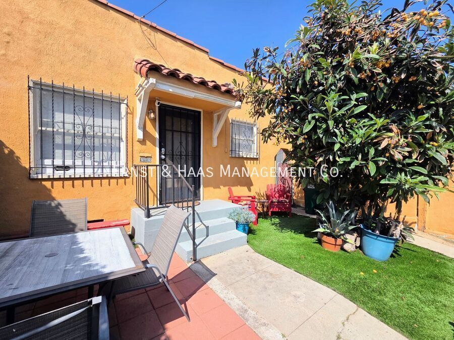 Charming 1-bedroom cottage-style duplex unit with a private, fenced front yard, offering both comfort and convenience in a highly walkable neighborhood. The interior features original hardwood floors, window blinds, ceiling fans, and a well-sized living area that feels open and inviting. The kitchen comes equipped with a stove and refrigerator, includes a cozy in-kitchen dining area, and has a rear door that leads directly to the side yard for added accessibility. The bedroom is generously sized and includes a ceiling fan and a walk-in closet. The bathroom has been updated with an upgraded tub and vanity mirror, providing a clean, refreshed feel. Water is included in the rent. Ideally located with a Walk Score of 92, this home is just one mile from the beach and within close proximity to shopping, restaurants, and coffee shops. Laundry facilities are conveniently located just 0.3 miles away (approximately a 7-minute walk or 2-minute drive). For more information on this or any other available property, please contact Ernst & Haas Management at , or visit us online at