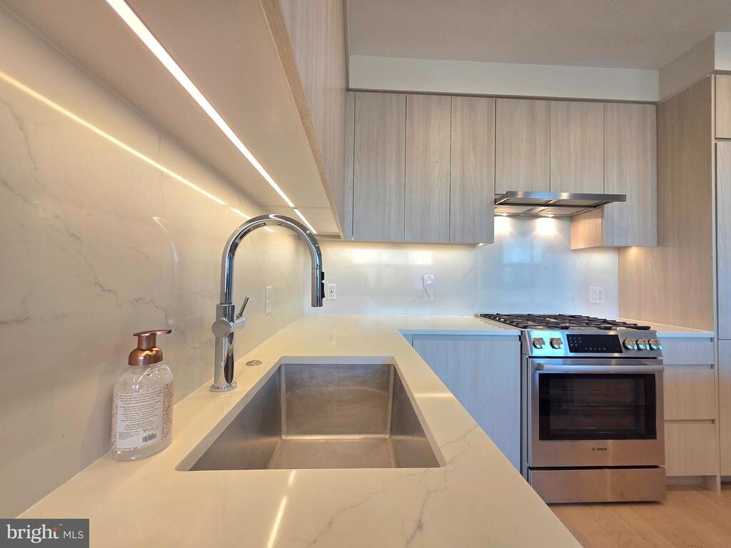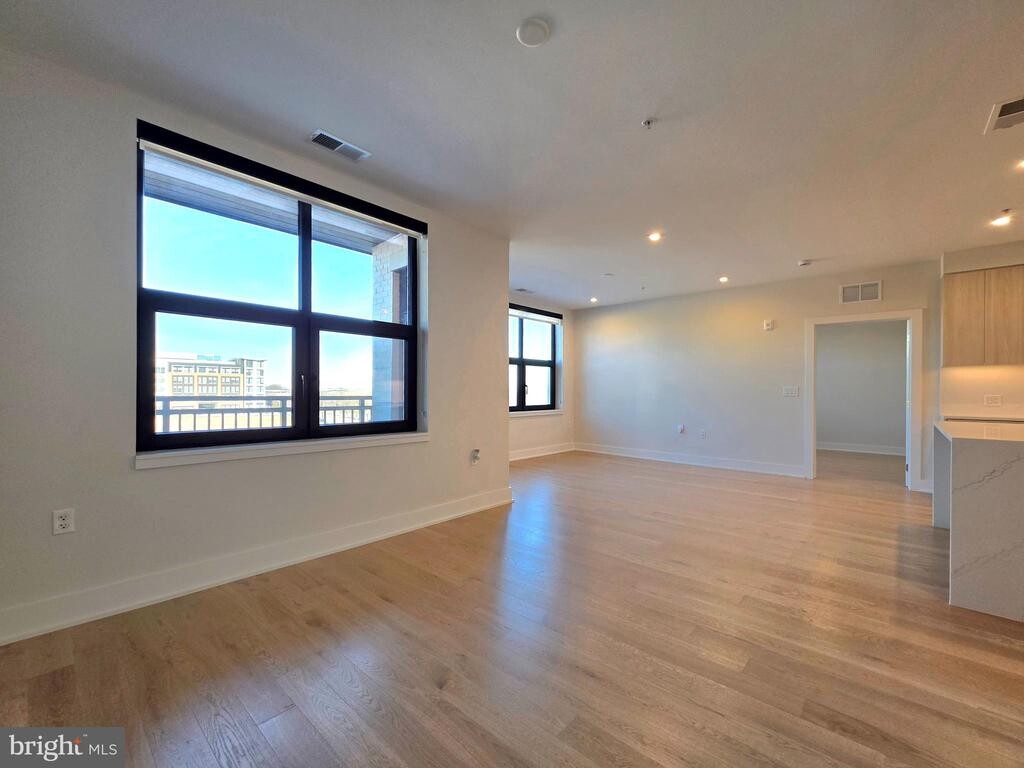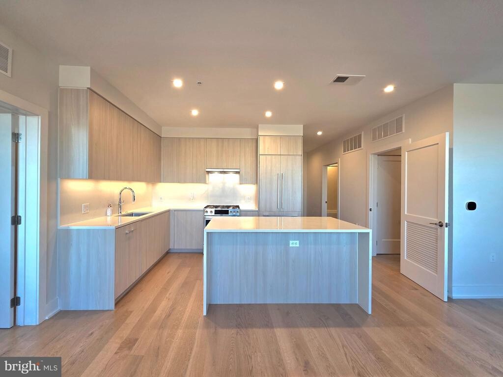 737 Swann Ave #308 is a luxury condominium in The Dylan at Potomac Yard, a contemporary mid‑rise building completed around 2023 in one of Alexandria’s most walkable, transit-oriented neighborhoods. This unit offers 1,056 sq ft of living space with 1 bedroom plus a den (perfect as a second bedroom or office) and 2 full bathrooms, featuring a spacious open floor plan that is uncommon for one-bedroom residences. Inside, the home showcases hardwood floors, a gourmet kitchen with a quartz island and high-end stainless steel appliances, and expansive windows that fill the space with natural light. The luxury bathrooms feature premium fixtures, elegant vanities, and designer finishes. A private balcony off the living area adds an inviting outdoor space for relaxation or entertaining. For convenience, the unit includes an in-unit washer and dryer, making daily living effortless. The building offers top-tier amenities, including a concierge, secure garage parking, fitness center, rooftop lounge with panoramic views, a party room, bike storage room, dog washing stations, and reserved parking. Its prime location near the Potomac Yard Metro Station (Blue & Yellow Lines), dining, shopping, and parks makes it ideal for commuters and those seeking an urban lifestyle. The property is pet-friendly, allowing up to two dogs under 50 lbs each (breed restrictions apply); cats are not permitted.