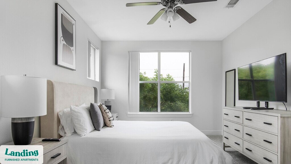 Landing is a top-rated, fully furnished apartment network with thousands of homes across 250+ U.S. cities. With premium amenities, a mobile app to manage your stay, and 24/7 support. Our apartments have everything you need for monthly and longer stays. 6-Month+ Stay base rent: starts at $2303/mo 12-Month+ Stay base rent: starts at $2303/mo Landing's apartments at City North are designed for comfortable, easy living, with the ability to stay as long as you like. All Landing apartments include: - Fast Wi-Fi - Stylish furnishings - Fully-stocked bathroom - Smart TVs - Comfortable bed - Professionally cleaned - Guest support Stay longer for cheaper! The longer you stay, the bigger your discount. Price advertised is for a 12-month stay, including all utilities and fees, and may vary based on availability. We manage multiple units at this property. While all feature a similar style and furnishings, the layout and specific design elements may vary slightly from the photos provided. Some of the nitty-gritty: a background check and proof of income are required; we're completely smoke-free; pet-friendly options are available; parking is subject to availability.