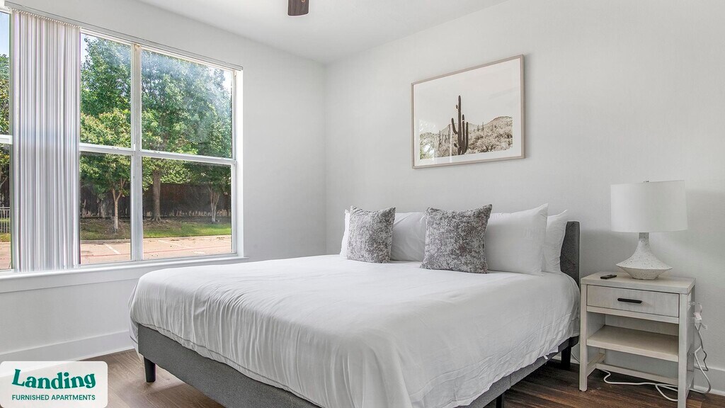 Landing is a top-rated, fully furnished apartment network with thousands of homes across 250+ U.S. cities. With premium amenities, a mobile app to manage your stay, and 24/7 support. Our apartments have everything you need for monthly and longer stays. 6-Month+ Stay base rent: starts at $2154/mo 12-Month+ Stay base rent: starts at $1850/mo Landing's apartments at City North are designed for comfortable, easy living, with the ability to stay as long as you like. All Landing apartments include: - Fast Wi-Fi - Stylish furnishings - Fully-stocked bathroom - Smart TVs - Comfortable bed - Professionally cleaned - Guest support Stay longer for cheaper! The longer you stay, the bigger your discount. Price advertised is for a 12-month stay, including all utilities and fees, and may vary based on availability. We manage multiple units at this property. While all feature a similar style and furnishings, the layout and specific design elements may vary slightly from the photos provided. Some of the nitty-gritty: a background check and proof of income are required; we're completely smoke-free; pet-friendly options are available; parking is subject to availability.