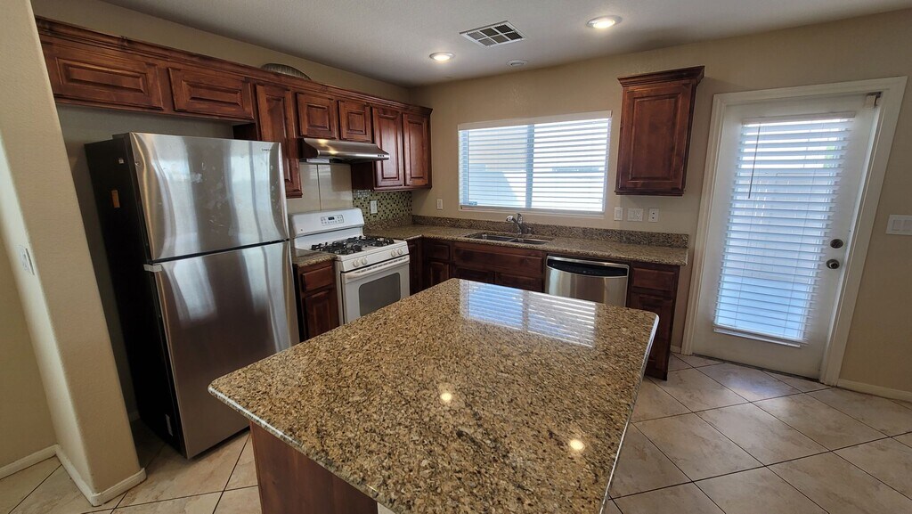 This home has 4 bedrooms and 3.5 baths. Granite counter tops in the kitchen with a center island. Nice cabinets. Tile through out downstairs area, laundry room, and half bath. Easy maintenance desert landscape, back patio, two car garage, and close to EVERYTHING makes this a great home! 650 minimum credit score. All applicants over the age of 18 must apply at: $100 app fee per adult. Must provide copies of ID and proof of income. 2 most recent pay stubs AND bank statements. Must have Renters Insurance. Tenant pays $40 for sewer/trash. Call Harry for viewing.