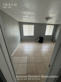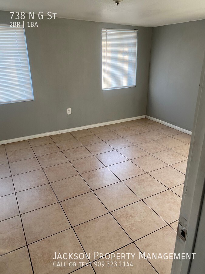 Super spacious 2 bedroom/1 bath back unit. Private gated parking unit available for rent. Tile and lino throughout the unit, open concept living room to kitchen. Granite counter tops in the kitchen with wooden cabinets. Good size bedrooms also tiled through making it feel airy and nice. Unit is read to for move in. Water and gas included in the rent. Centrally located in San Bernardino, with easy access to the highway and close to several shopping centers and restaurants. if interested in one of our rental properties, please submit an application along with your supporting documents as you will need to get pre-qualified before viewing the unit. We will process your application which can take up to 3-5 business days to complete. If approved, you will be scheduled an appointment to view the property with an agent. At the appointment, the holding deposit will be collected; if failed to bring a holding deposit, the application will automatically be cancelled. All occupants 18 years or older must submit an application and pay a $45.00 screening fee, no exceptions. There must be NO evictions or judgments on any applicant's credit report. Combined gross income of all applicants must be no less than 2.5 times the monthly rent. Credit score minimum of 600. Must be able to verify employment and rental history for the last two years. We will need a copy of each applicant's ID, Social Security card and 2 recent months of paycheck stubs or proof of income. *In order to rent this property, renters insurance is required or enroll in a damage waiver program* How to apply online: 1.Go to 2.Click on Rentals 3.select the property you would like to apply for. 4.Click on Apply Online 5.Fill out application 6.Click on I agree & affirm all of the above 7. An email will be sent to you to complete the e-signature 8. All documents can be emailed to or fax to Refridgerator Stove