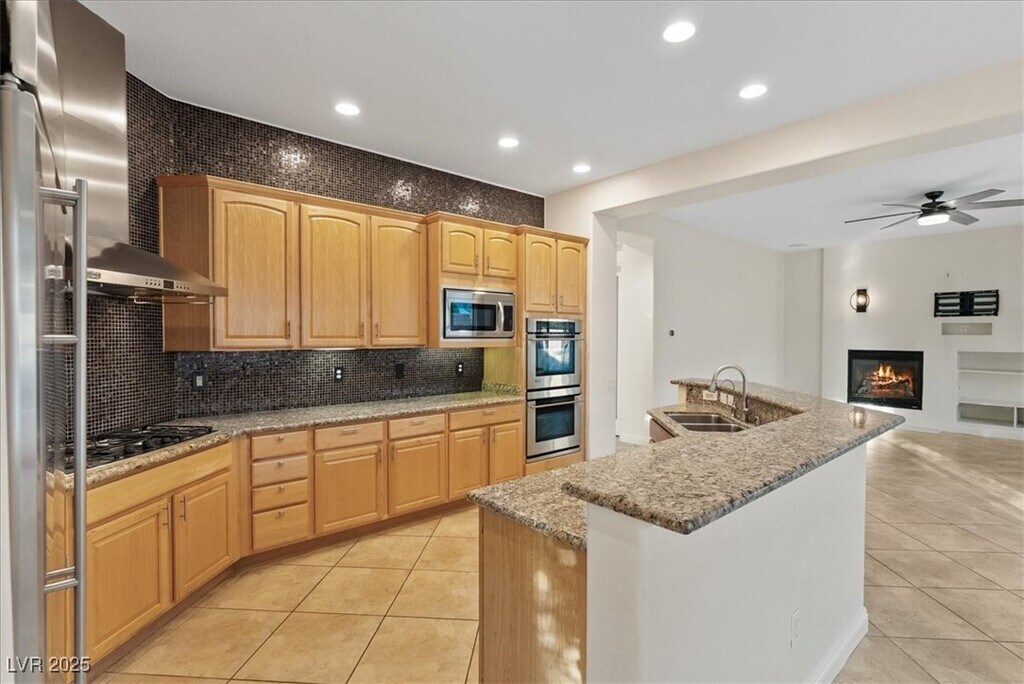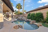 Indulge in refined luxury with this breathtaking 5-bedroom, 4-bath estate on a prestigious corner lot. The chef’s kitchen is a culinary masterpiece, showcasing rich granite countertops, dual sinks, built-in double ovens, a gas cooktop, and an expansive breakfast island designed for entertaining. The open-concept layout flows seamlessly through elegant tile flooring into the formal dining room and inviting living spaces. A private downstairs bedroom offers comfort and flexibility. Upstairs, a sophisticated loft and two secondary suites with private baths provide ample space for family or guests. The grand primary suite exudes tranquility with large picture windows and a spa-inspired ensuite featuring dual vanities, a soaking tub, and a glass-enclosed shower. Step outside to your personal paradise—an entertainer’s dream with a custom pool and spa, covered patio, and lush landscaping. A spacious three-car garage completes this extraordinary home.