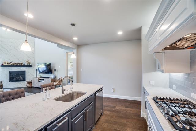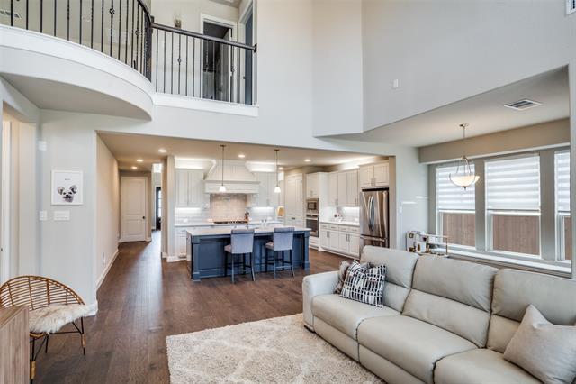 GORGEOUS and MODERN American Legend home in the community of The Grove, Frisco and Frisco ISD. Pie wedge lot! This highly functional 4 bed, 4 full bath home has dedicated and separate spaces for study and dining and is filled with natural light and soaring ceilings. The open plan kitchen is perfectly located at the center of the home and upgraded with a huge island, dual tone white and navy kitchen cabinetry, butler's pantry, and water softener. A convenient second bed and full bath is down on the first floor as an in law suite. Upstairs has 2 bedrooms, both with large walk-in closets, and 2 more full bathrooms with media and game. This quiet and interior lot is walking distance to the exemplary rated Liberty HS. The award winning Grove sub-division offers resort style pool and clubhouse facilities and close by to 121, 75, DNT and all shopping within minutes. Garage has been upgraded with EV friendly outlet. WELCOME HOME!