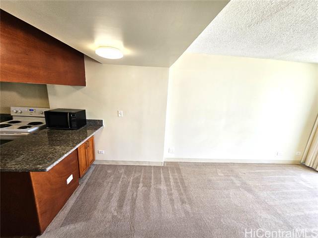Unique split-level 1 bedroom, 1 bath unit in Moiliili with 1 covered parking stall. Living room and kitchen or on the first level. The bedroom and full bath are upstairs on the second level. The unit was fully renovated in 2020 and is in excellent condition. Solid light cherry cabinets and quartz countertops in the kitchen, as is the stacked washer/dryer. Rent includes water and sewer. Electricity is sub-metered and billed by the property manager. Min. 1 yr. lease, MTM thereafter. No smoking/vaping or animals/pets. Must have 680+ credit score, Mo. gross income must be 2.5x the gross rent, 4x the monthly rent in reserves, good rental references. $32 Application fee per adult. Professional cleaning at move out and renter's insurance are required.