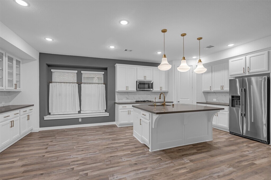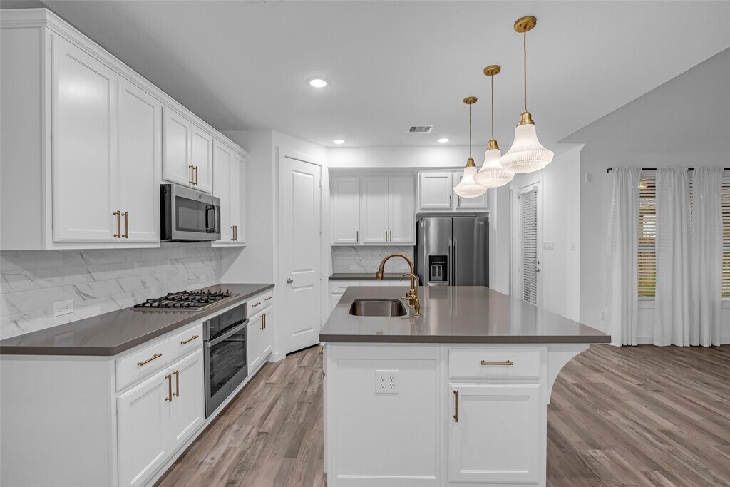 Experience elevated living in this like-new home in a master-planned golf course community with resort-style amenities. With 4 bedrooms,3.5 baths,and manicured curb appeal,this home offers both elegance and comfort. The kitchen and dining area flow effortlessly into the family room,creating a warm and inviting gathering space. Designer details include a buffet wall with upper and lower cabinetry,an oversized island with farmhouse sink,quartz countertops,gold accents,and statement pendant lighting. The private downstairs primary suite is a true retreat with a freestanding oval tub,separate shower,double vanities,and walk-in closet. Upstairs features a spacious game room and three secondary bedrooms,including one with an ensuite bath. Soft neutral tones and tasteful finishes shine throughout. Enjoy the covered patio with gas stub for grilling,a premium lot backing to a walking trail and green space. Other features: water softener,tankless water heater and sprinkler system! MLS# 41651606
