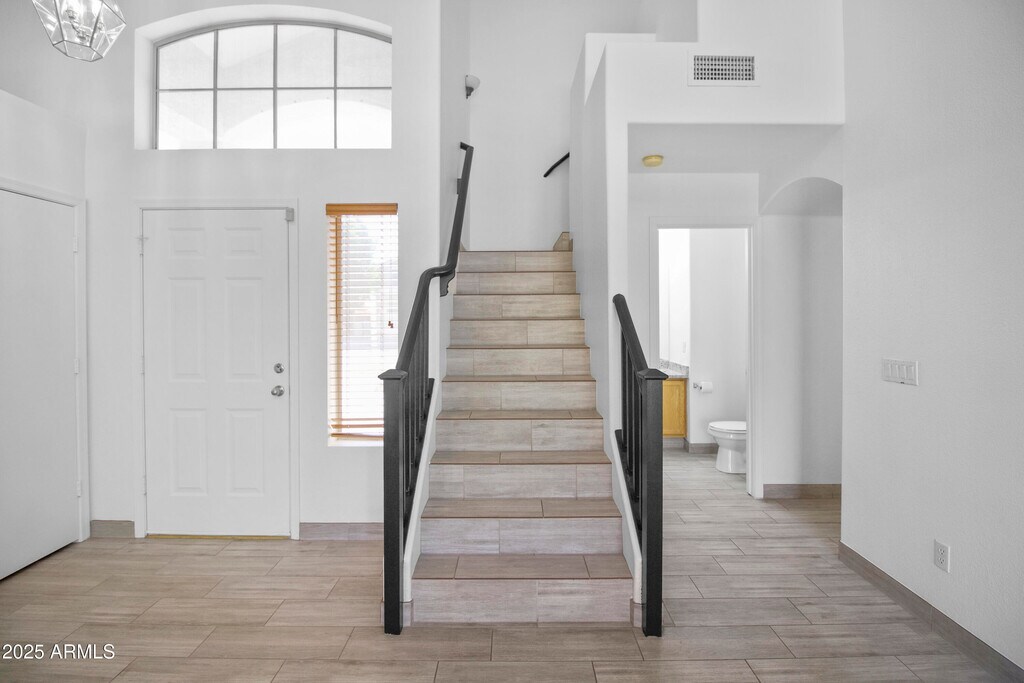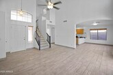 Beautifully updated 3bed/2.5bath home offering a spacious primary suite complete with a large walk-in closet and an elegant bath featuring dual vanities. The open-concept main level showcases new contemporary flooring,a striking accent wall,and an abundance of natural light throughout. Step outside to an extended covered patio overlooking the lush Valencia at Sierra Verde greenbelt,perfect for relaxing or entertaining. Enjoy nearby Sierra Verde Park and Lake,with convenient access to dining,shopping,and the Loop 101.