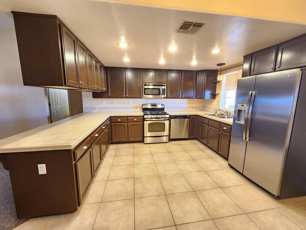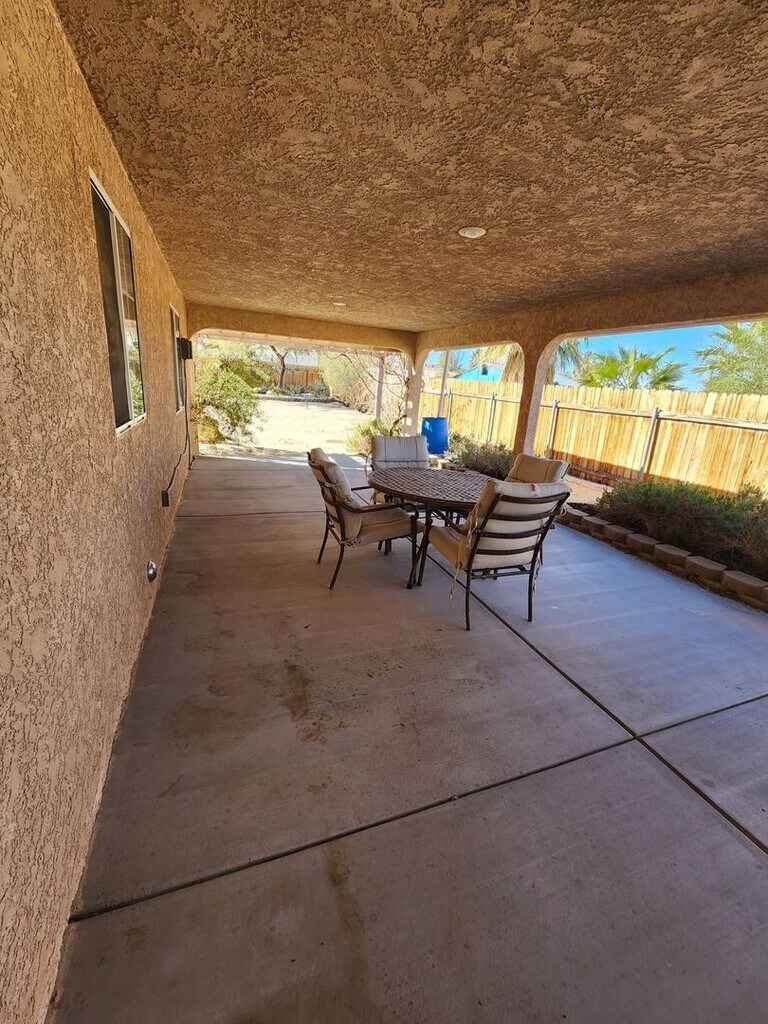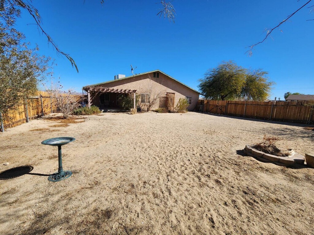 Corner Lot Large 3 bedroom 2 Bath Home This open concept 3 bedroom 2 bath home is located 5 minutes from the MCAGCC base! Large corner lot and beautiful landscaping, mature trees and fruit plants. Primary bedroom and on suite are separated from guest bedrooms. Washer and dryer included! Covered patio with outdoor dining set great for entertaining! Amenities include stainless steel appliances, fridge, gas range, and dishwasher! Contact us to schedule a private showing! $40 application fee. Offered by Roadrunner Realty. Lic.# 01517134