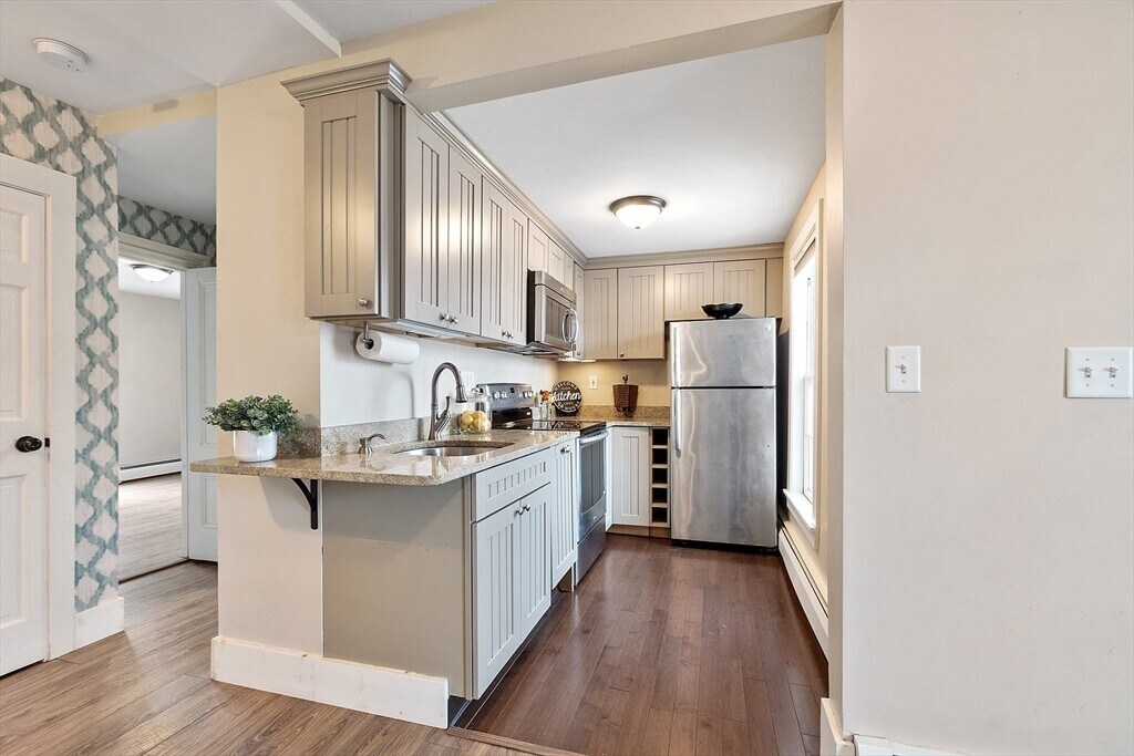 Welcome to this charming condominium in the South End of downtown Newburyport,just minutes from the beach,restaurants,shopping and rail trails. This bright and inviting unit features two spacious bedrooms,a sun-soaked private deck ideal for relaxing or entertaining,and a cozy living room with a wood-burning fireplace. The kitchen offers stainless steel appliances,and there’s a convenient ¾ bath plus in-unit washer and dryer. Additional highlights include basement storage,one dedicated parking space,and ample off-street parking. Enjoy the beautifully landscaped shared yard that adds to the home’s charm. Another perk,pets allowed with a $50.00 monthly fee. This condo truly is a tenant’s dream. MLS# 73455055