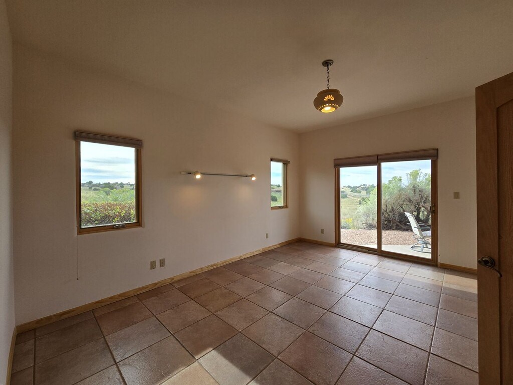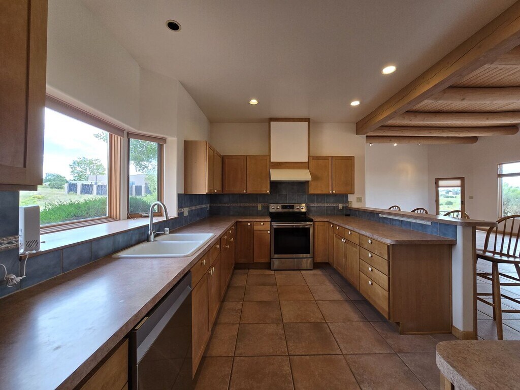 Discover this expansive 2,200 sq ft home, where classic Southwestern style meets modern comfort. The open-concept living area is the heart of the home, featuring magnificent vigas and high ceilings that create a grand, airy feel. Large windows and glass-paneled doors fill the space with natural light and offer beautiful views of the surrounding landscape. The well-appointed kitchen is a chef's delight, now featuring a brand-new refrigerator, gas range/stove, and dishwasher, along with stainless steel finishes, abundant cabinetry, and a large breakfast bar that opens to the living area—perfect for entertaining. The home includes three generously sized bedrooms and two full bathrooms, providing plenty of space and privacy. The primary suite is a true retreat, offering a spacious bedroom with a private patio and a large walk-in closet with custom shelving. The en-suite bathroom is a spa-like sanctuary, featuring a jetted tub, a separate tiled walk-in shower with a built-in bench, and a dual vanity. The second full bathroom serves the two additional bedrooms and guests. A dedicated laundry room now offers a new washer and dryer, along with a utility sink and shelving, making chores a breeze. Additional upgrades include a water filter system and softener, ensuring clean, high-quality water throughout the home. The exterior perfectly captures the essence of Southwestern architecture, featuring a warm, inviting stucco finish and a large, attached two-car garage. Step outside to a large, covered portal where you can enjoy breathtaking mountain and mesa views. The private outdoor space is ideal for dining, entertaining, or simply relaxing in the peaceful high-desert environment. This property is a remarkable find, offering a perfect blend of rustic elegance, modern upgrades, and stunning natural beauty. Contact us today to schedule your private tour! Brant Goodman, Qualifying Broker. Rental Fees & Policies Pet Policy Pets Considered ($50.00 / month per pet) Early Lease Termination • Fee equal to one month’s rent plus gross receipts tax • Tenant remains responsible for rent and utilities until the unit is re-rented Payment Policies • Late Fee: 5% of monthly rent if payment is not received on time • NSF Fee: $25 charge for returned payments Utilities • Tenants are responsible for establishing and paying all utilities directly with the utility companies. Renter’s Insurance • Tenants are required to obtain and maintain renter’s insurance for the duration of the lease Contact: Jacob Couch Landseer Management 613 Old Santa Fe Trail Santa Fe, NM 87505