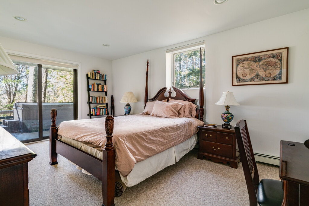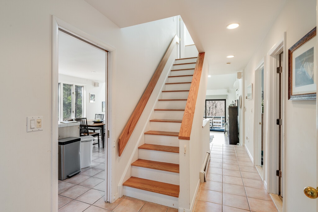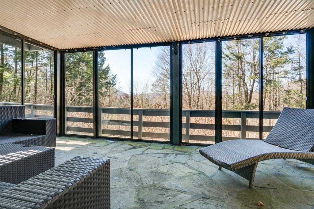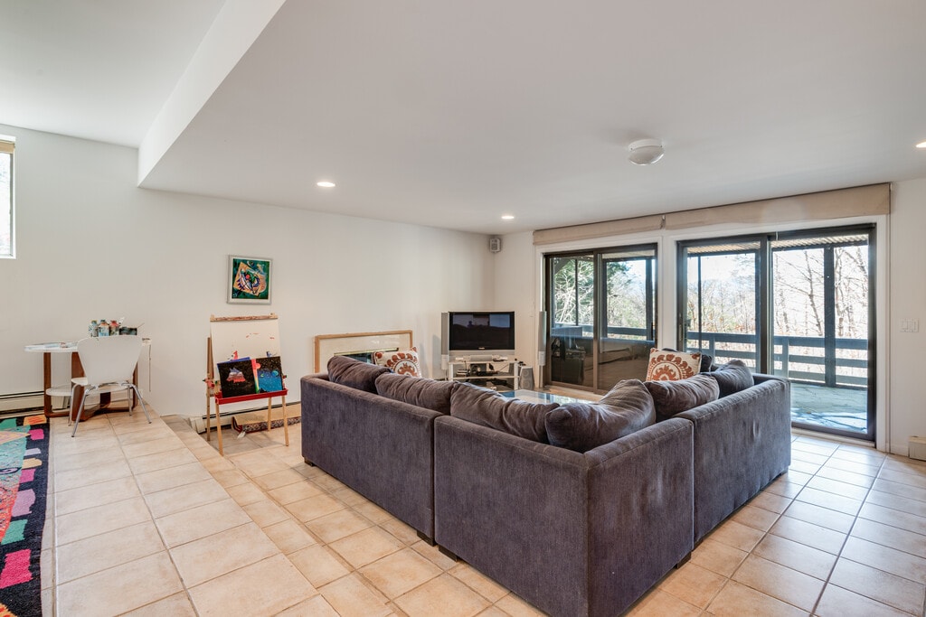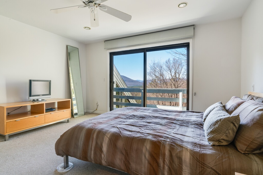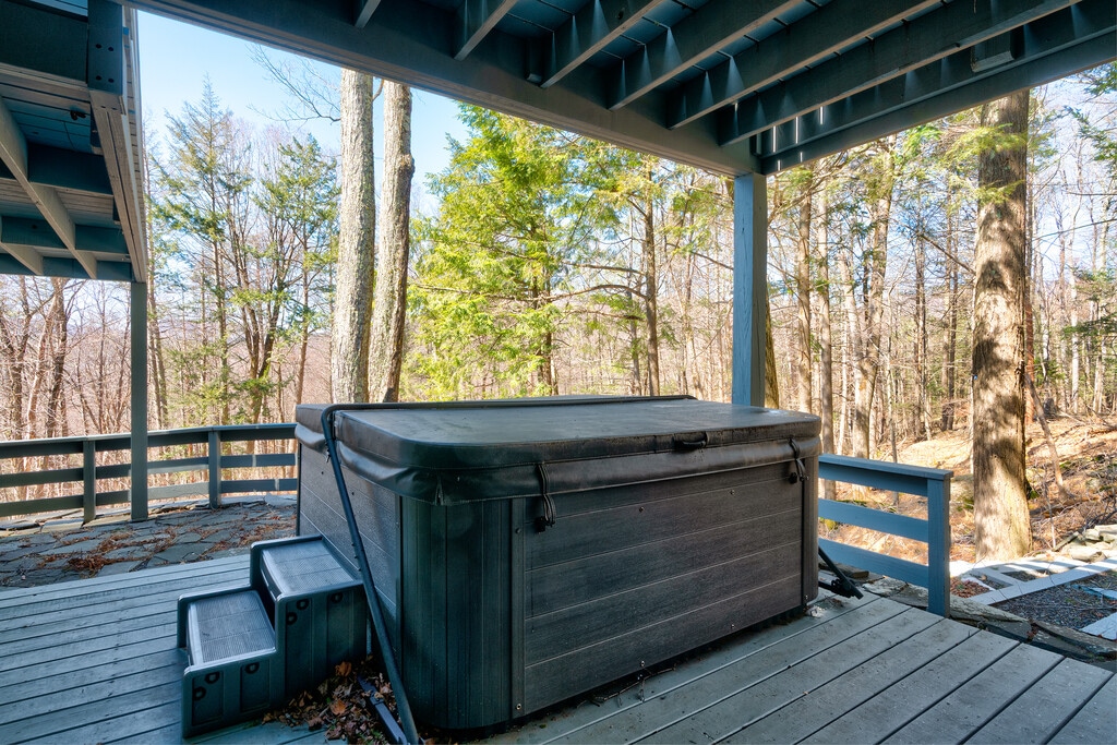 MT. GUARDIAN GETAWAY is a comfortable, kick-back, family-friendly home with a layout that allows for both great gatherings and space for privacy and work. The open-concept first floor. offers a well-stocked kitchen, dining area for 8, and a large living room that can accommodate multiple generations in one space. Guests can enjoy the wood-burning fireplace or pass through to the generous-size outdoor deck for grilling and dining. 4 bedrooms an 2 1/2 baths divided among 3 floors provide many opportunities for quiet and privacy. Set in the woods, less then 10 minutes from the center of town, this home is private, quiet, and yet not isolated. The lightly travelled country road is a beautiful, safe walk for adults, children, and dogs. The well-maintained hot tub is available year-round. Two levels of decks allow for enjoyment of the mountain views. And the game/TV room on the lower level has space for creativity, ping-pong, and relaxation on the screened in porch. Rentals are for 30+ nights. Stays longer than 90 days may be possible. Rent includes all utilities. $2500 security Deposit + Rental Insurance required. Posted rental rates are October through April. Please contact us directly to discuss summer rates when the heated pool is available.