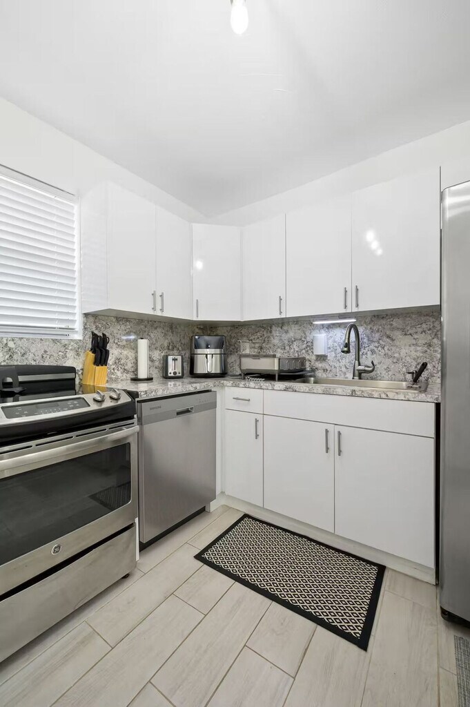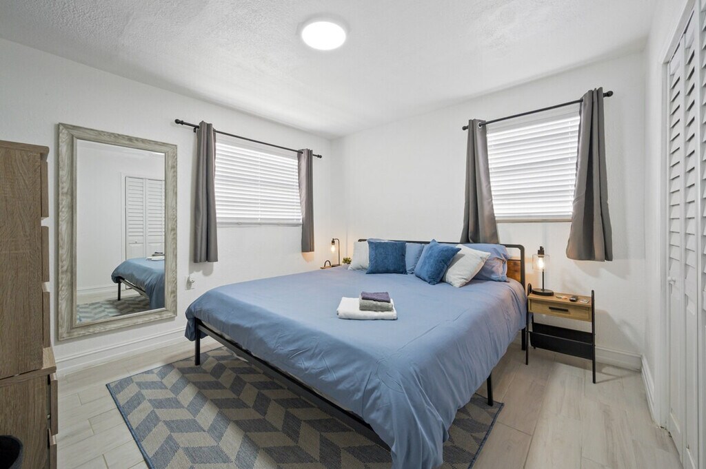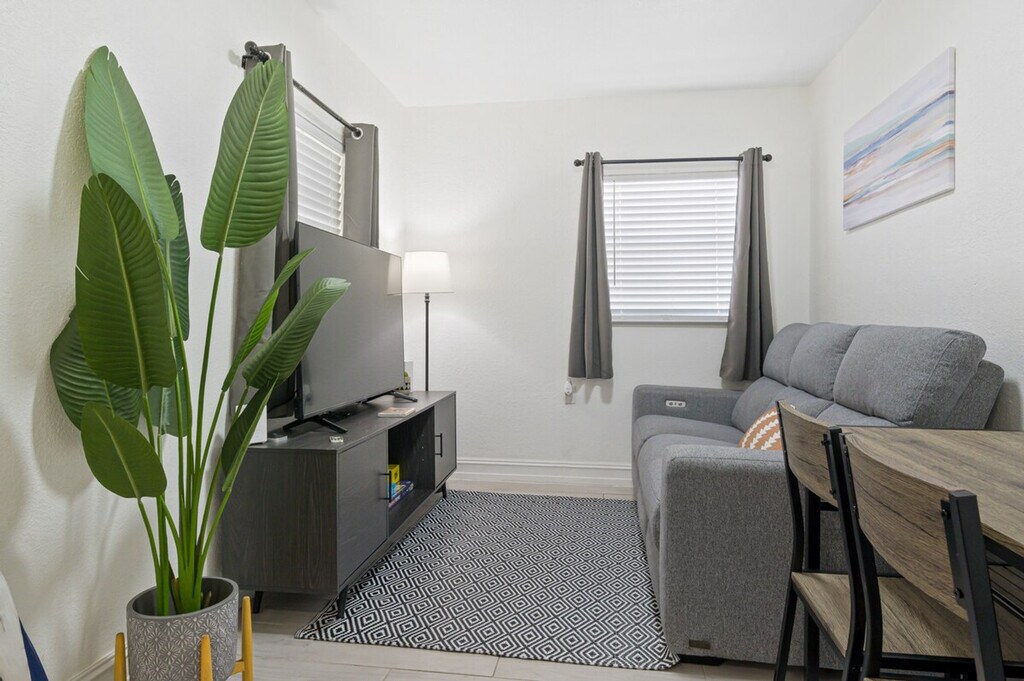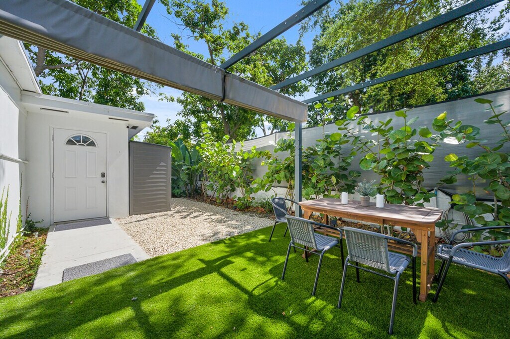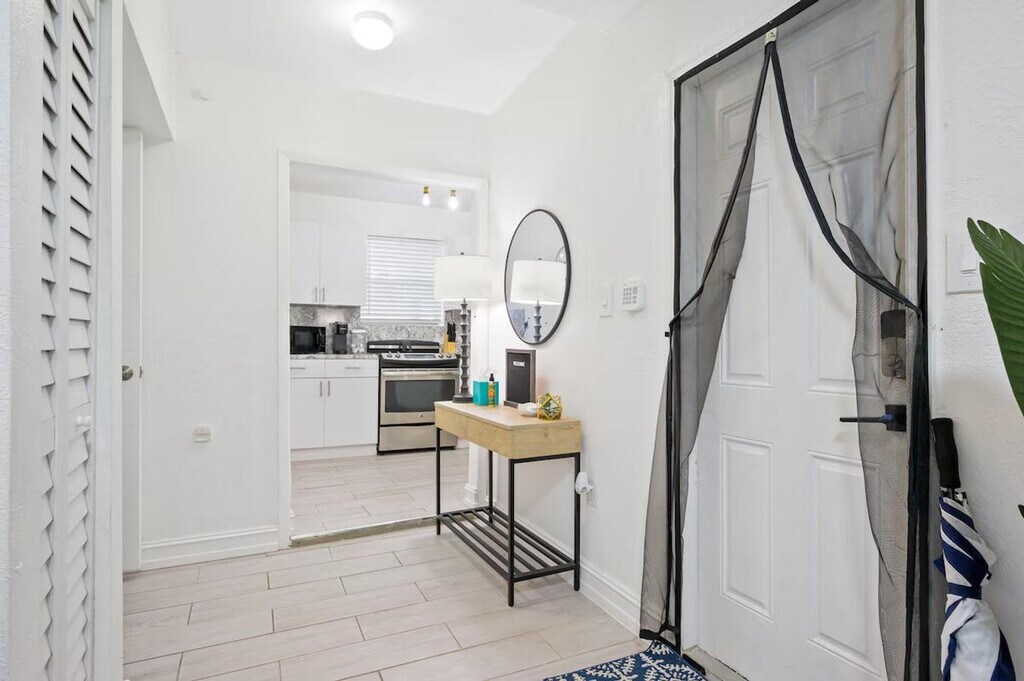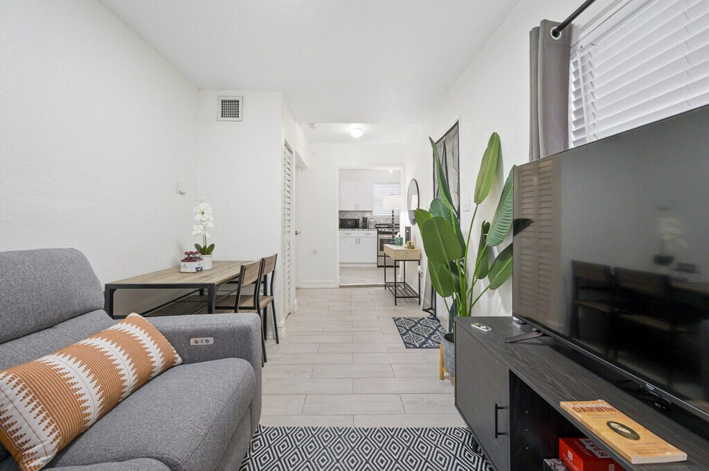 Feel at home in this peaceful and centrally located apartment in Little River. This renovated home has 2 bedrooms, 1 bathroom, and can accommodate up to 4 guests comfortably. Casa Oasis, completely renovated in 2023, comes equipped with everything you will need to enjoy your time. The apartment features a fully stocked kitchen with stainless steel appliances, air fryer, washer/dryer, coffee maker and Keurig k-cup coffee maker with pods, toaster, dishes, glasses and mugs for up to 4 guests. There is a beautiful living room space with a 55" smart TV with YoutubeTV, Netflix, Hulu, Pandora and many other apps installed, and a reclining sofa for accommodating maximum comfort. Enjoy the cozy dining area to enjoy good food, drinks and laughs. A full bathroom includes a luxurious rain showerhead, shampoo, soap, and towels to accommodate up to 4 people. Relax and enjoy the spacious outdoor area, including an outdoor table for taking in the sun. Additional amenities include iron/ironing board, detergent for washing clothes, beach chairs, towels and cooler, outlets next to each bed, and closets for storage in each bedroom. Guests have complete access to the house and a private patio in the backyard. Gated parking is available that can accommodate up to 2 vehicles. Free driveway and additional free street parking are available. The apartment is located 7 minutes to Wynwood, Design District & Midtown, 15 minutes to South Beach, 10 minutes to MIA airport, and 12 minutes to Brickell. The apartment has a principal house that is a mid-term rental but it's separate and private from this main house. This rental is 100% private with its own private entrance and private backyard space! Smart, keyless entry is provided for an easy check-in/check-out process. A security camera system is on the exterior of the home for additional peace of mind during your stay. Bi-monthly cleanings are provided for long-term stays.
