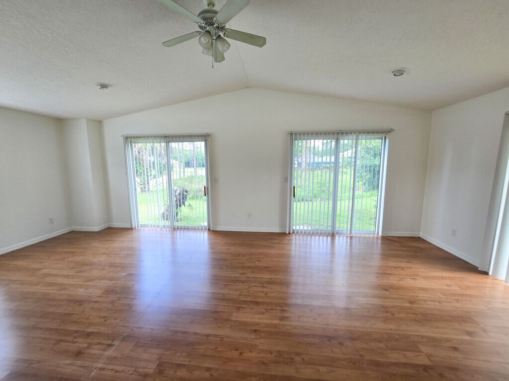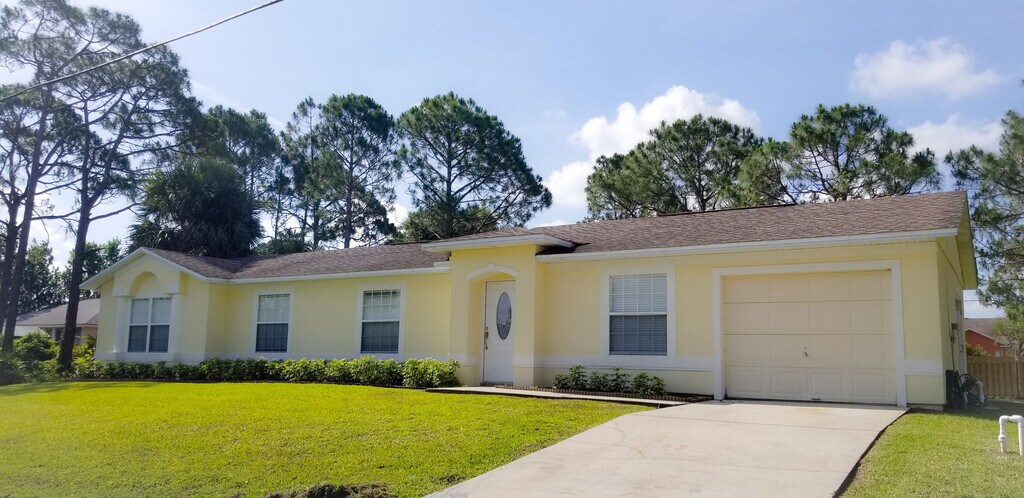 3 Bedroom, 2 Bathroom, 1 Car garage in Pam Bay! This home has a Huge Master suite. The third bedroom has French doors and can be used as an office or nursery and can be closed off along with the Master from the rest of the house! Guest bed and bath spit on the other side. Large yard (-good thing that lawn care is included) and space on either side from neighbors. Great location in Palm Bay! Definitely a must see. Freshly painted inside, clean and crisp!