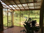 Back Yard Studio Tiny House for Rent ! Cute as a button ! One Screened-In Porch area, Living Room, Kitchen/Bathroom and 1 Loft Style Bedroom. Comes Rented FULLY FURNISHED and all utilities are included in the rent for $ 950/month. Unit is being offered fully furnished, and all bills included for $950.00 Electricity, Water, Wifi, Cable is all set up already, and all the furniture is included in the rental. Small pets are OK with Pet Deposit of $300, but must get along with the dog of the owner of the main house, due to shared back yard. Will do play date with the animals prior to move in to see if they can co-exist in the back yard.